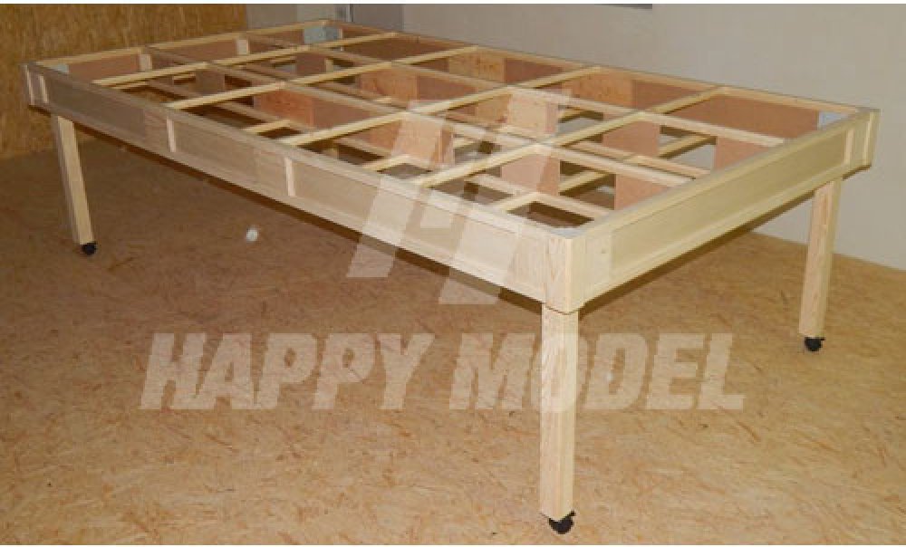 Kompletní stavebnice rámu kolejiště se dvěmi úrovněmi. Provedení ze dřeva. Obsahuje: čelní díly, boční vnější díly a vnitřní středové díly, 4 kusy dřevěné nohy ze smrkového dřeva s otočným kolečkem s brzdou a 24 ks příčky s drážkou. Dřevěné díly nejsou povrchově upraveny. Rám je dodáván v rozloženém stavu. Montáž nevyžaduje zvláštních schopností ani speciální nářadí.