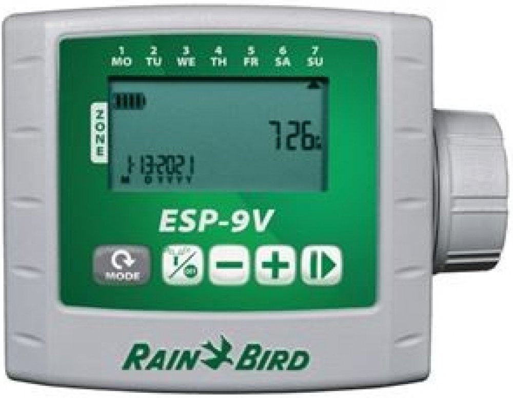 Bateriová řídící jednotka RainBird ESP-9V-1 s elektroventilem pro 1 sekciRainBird ESP-9V je špičková bateriová řídící jednotka navržena pro bezproblémové zavlažování. Tato jednotka je ideálním řešením pro systémy, kde není dostupná elektrická energie, ať už pro soukromé zahrady nebo veřejné prostory. S vodotěsným provedením, odpovídajícím normě IP 68, je tato jednotka plně přizpůsobena pro venkovní použití a může být instalována přímo v šachticích u ventilů, kde spolehlivě čelí vlhkosti a náročným podmínkám.RainBird ESP-9V vyniká jednoduchostí ovládání a profesionální výkonností, poskytuje uživatelům snadnou instalaci a minimální údržbu. Její robustní design zajišťuje dlouhodobou spolehlivost a výkon, což z ní dělá efektivní volbu pro každého, kdo hledá odolnou a intuitivní řídící jednotku pro svůj zavlažovací systém. Jednotka je vhodná pro použití do soukromých zahrad i veřejných ploch. Napájení pomocí 2x 9V alkalické baterie (baterie nejsou součástí balení) Disponuje velkým LCD displejem a programovacími ikonami, ovládání je konzistentní s řadou RZX Nabízí větší displej než konkurenční produkty Odolná proti vodě díky membránové klávesnici Různorodé možnosti zavlažovacích programů, snadné tříkrokové nastaveníSpecifikace: 1 Program, 8 startovacích časů Velký LCD displej a programovací ikony Membránová vodotěsná klávesnice Velký výběr zavlažovacích režimů Funkce WATER BUDGET 0-200% Funkce RAIN DELAY vyřadí zavlažování na interval 1-15 dní Obvod pro hlavní ventil/spouštecí relé čerpadla Samostatný vstup pro přímé zapojení čidla srážek RSD-BEX Kompatibilní jen s 9V solenoidem Ochranné krytí IP68 Indikace slabých baterií pracuje se všemi 9V elektroventily max. vzdálenost mezi ovládací jednotkou a 9V cívkou je 30 m při použití vodiče 1,5 mm2Jednotku lze upevnit pomocí držáku na stěnu, nebo může být připevněna na 9V Rain Bird solenoid elektromagnetického ventilu. Balení řídící jednotky neobsahuje baterii.