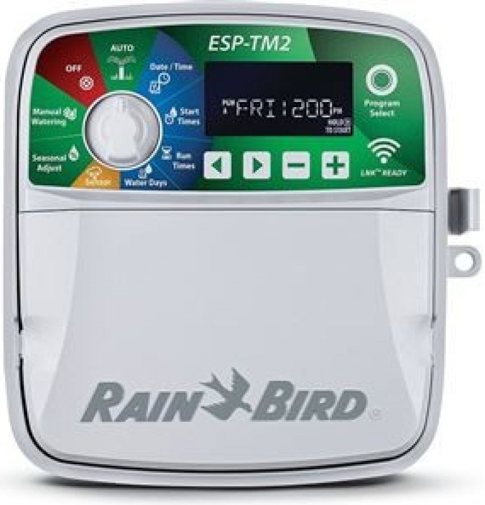 Řídící jednotka Rain Bird ESP-TM2I-4 pro 4 sekce - interníŘídicí jednotka Rain Bird ESP-TM2I je spolehlivé řešení pro automatické řízení zavlažovacích systémů na soukromých zahradách, komerčních i veřejných plochách. Díky vestavěnému transformátoru a odolnému provedení je určena pro venkovní instalaci. Ovládání je pomocí otočného kolečko a přehledný podsvícený LCD displej zajišťují intuitivní nastavení a rychlé spuštění závlahových programů.Jednotka je určená k instalaci v interiéru (dům, garáž, zahradní domek) a nabízí 4 sekce, tři nezávislé programy s možností čtyř startovacích časů a flexibilní volbu závlahových režimů podle dnů v týdnu, sudých/lichých dnů nebo cyklických intervalů. Programování lze rychle nastavit ve třech krocích, s možností manuálníhouštění jedním dotykem.ESP-TM2 je plně kompatibilní s WiFi modulem Rain Bird LNK2 (prodává se samostatně), který umožňuje vzdálené ovládání z mobilních zařízení a automatické přizpůsobení závlahy aktuálnímu počasí. Díky tomu můžete snížit spotřebu vody až o 30 % a přizpůsobit zavlažování skutečným potřebám rostlin.Klíčové vlastnosti Flexibilní správa sekcí Možnost ovládání 4 sekcí se snadným připojením hlavního ventilu nebo relé čerpadla pro efektivní provoz systému 3 programy a 4 startovací časy Flexibilní plánování závlahy s možností až 12 spuštění za den Různé režimy zavlažování Volba dnů v týdnu, sudé/liché dny nebo cyklické intervaly od 1 do 30 dnů Podsvícený LCD displej Výborná čitelnost i za tmy nebo na přímém slunci Kompatibilita s WiFi LNK2 Možnost dálkového ovládání, přizpůsobení podle počasí a úspora vody až 30 % Intuitivní ovládání Otočné kolečko, manuální spuštění jedním dotykem a rychlé nastavení ve 3 krocíchPokročilé funkceOdložené zavlažování (1 – 14 dní)Tato funkce umožňuje dočasně pozastavit zavlažovací cyklus, například při delších deštích nebo při plánovaném servisu zahrady. Po uplynutí nastavené doby se program automaticky obnoví, takže není nutné znovu vše nastavovat ručně.Procentuální úprava doby závlahyMísto složitého přeprogramování lze snadno navýšit nebo snížit délku zavlažování u celého systému nebo jednotlivých programů. Díky tomu lze rychle reagovat na změny počasí a zajistit rostlinám optimální množství vody.Překlenutí čidla srážekPokud je k systému připojen dešťový senzor, lze nastavit, které sekce na něj mají reagovat a které ne. Umožňuje to například vypnout zavlažování trávníku během deště, ale nechat běžet kapkovou závlahu pro skleník.Nastavitelná pauza mezi sekcemiMezi jednotlivými zavlažovacími cykly lze vložit prodlevu v rozmezí od několika vteřin až po 9 hodin. To je výhodné zejména při systémech napojených na čerpadlo, které tak má čas se ochladit, nebo když je potřeba, aby se voda postupně vsákla do půdy.Možnost trvalého dne bez závlahyV nastavení lze vybrat konkrétní den, kdy se zavlažování nikdy nespustí. To oceníte například v době pravidelné údržby zahrady nebo při sečení trávníku.