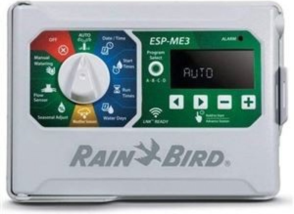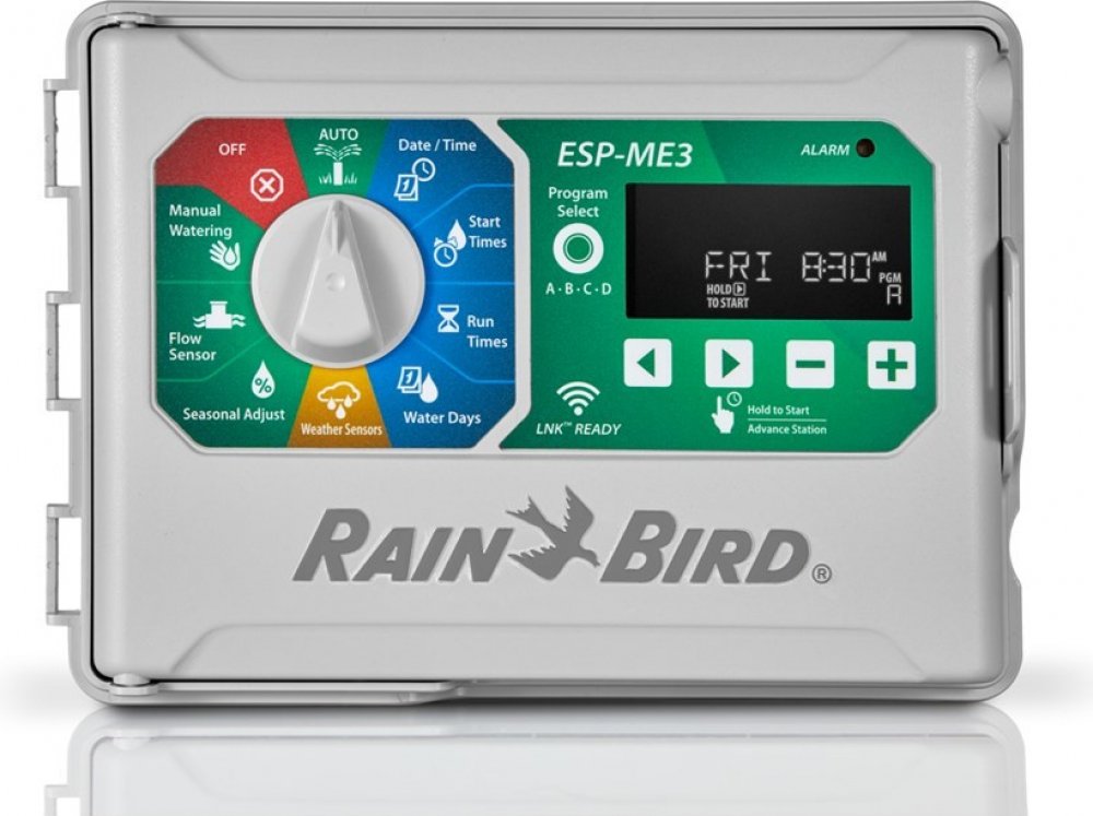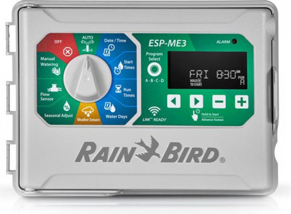 NOVINKA!Profesionální ovládací jednotka Rain Bird pro pokročilé rezidenční aplikace.Design řady ESP s velkým LCD podsvíceným displejem s výbornou viditelnoustí i v temných prostorách. Velké a přehledné ovládací symboly s grafickými ikonami. Plně kompatibilní s Rain Bird WiFi LNK. Po doplnění WiFi modulem LNK a přiřazení do domácí WiFi sítě, možnost vzdáleného přístupu k Vašemu závlahovému systému a možnost každodenní úpravy doby závlahy dle údajů o počasí z meteoserveru.Možnost snímání průtoku s novými, nadstandardními funkcemi.Modulární ovládací jednotka pro 4-22 sekcí. Hybridní ovládání: elektronické s otočným ovladačem pro snadnou obsluhu i programování. Maximalizujte svoji produktivitu pomocí této uživatelsky příjemé, výkonné ovládací jednotky s celou řadou pokročilých funkcí. Jednotka je výbornou volbou pro středně velké závlahové systémy v zahradách, parcích, komerčních areálech a zejména pro zavlažovací systémy na sportovní plochy.V základu jednotka pro 4 sekce. Přídavné rozšiřující moduly á 3 sekce resp. á 6 sekcí do maximální kapacity až 22 sekcí. Přídavné rozšiřující moduly á 6 sekcí lze použít POUZE pro jednotku ESP-Me. Velký LCD displej a otočný přepínač. 4 Programy: A, B, C a D. Velký výběr zavlažovacích režimů. Funkce WATER BUDGET 5-200% celkově pro jednotku i dle programů. Pauza mezi sekcemi STATION DELAY. Čidlo srážek přiřaditelné podle sekcí. Hlavní ventil přiřaditelný podle sekcí. Vestavěný 24V/230V transformátor. Obvod pro hlavní ventil/spouštěcí relé čerpadla. Vestavěný paměťový okruh pro zachování dat při výpadkou elektrického proudu. Samostatný vstup pro čidlo srážek a LED signalizace stavu čidla. Kapacita transformátoru maximálně 2 RB solenoidy + hlavní ventil (nebo relé čerpadla). "Contractor Default (TM)" možnost uložení a vyvolání základního programu. Uzamykatelná skříňka. Určeno pro vnitřní instalaci/venkovní montáž pod přístřeškem/montáž na stěnu.https://www.youtube.com/watch?v=pSs_YQD_J84