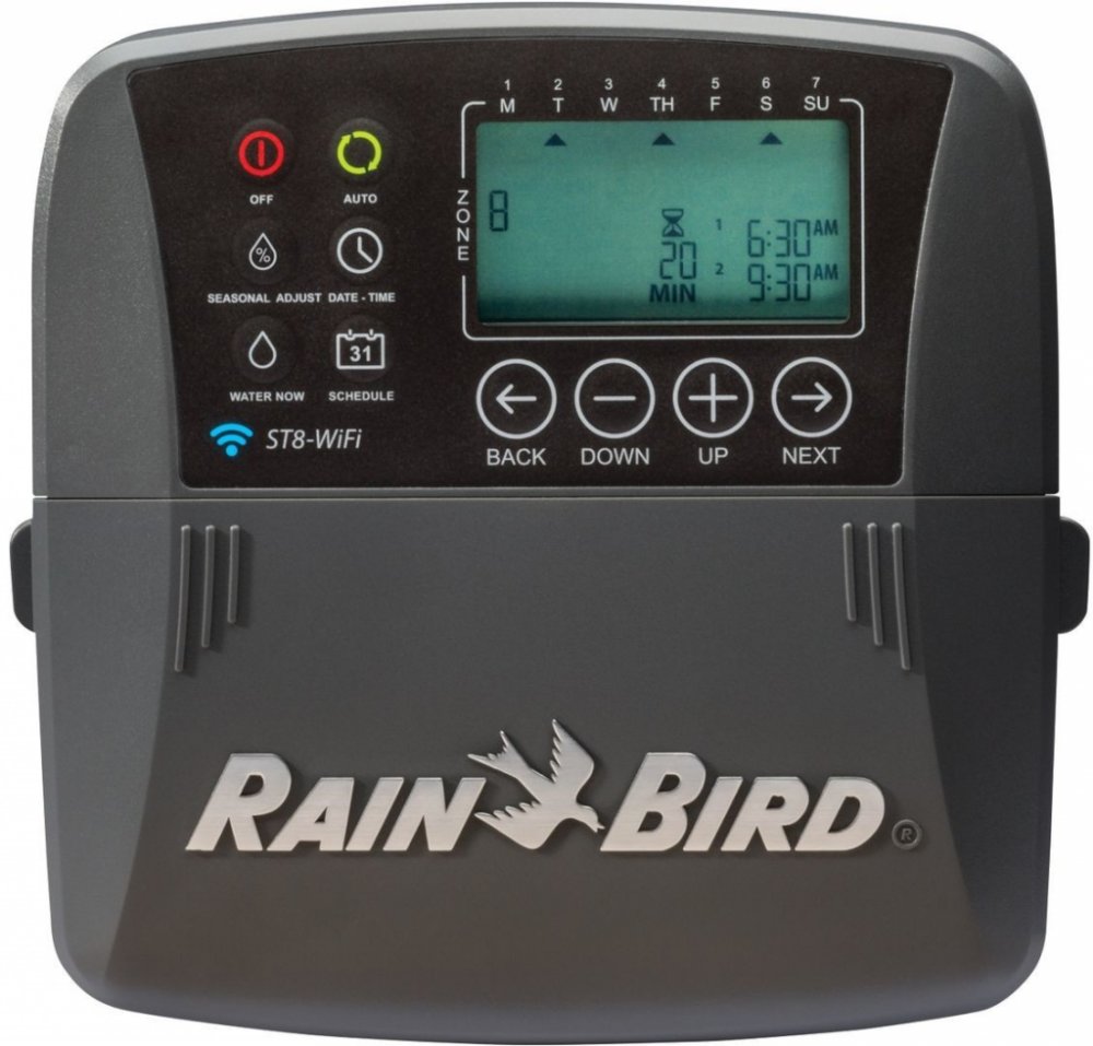 Toto řízení zavlažování je určeno pro montáž do interiéru. Nabízí maximální komfort a lze jej ovládat mobilně pomocí aplikace Rain Bird odkudkoliv na světě. Bez ohledu na to, kde se právě nacházíte, můžete ovládat zcela jednoduše své zavlažování nebo si přehledně zobrazit informace o svých naprogramovaných nastaveních: Velké plus, pokud jste na služební cestě nebo na dovolené. Díky časovému spínání Smart zavlažování Rain Bird přes wi-fi budete mít vždy dokonalý přehled o celém svém zavlažovacím systému. Ovládání a programování je velmi jednoduché a umožní vám nastavit individuální harmonogramy zavlažování až pro osm různých zón. LCD displej doma velmi snadno nainstalujete a bude vám poté přinášet přehled všech potřebných informací. Programování je velmi jednoduché. Řízení lze automaticky upravovat po celý rok. Budete tak obklopeni zdravou a krásně vypadající zelení a zároveň ještě díky patentované technologii Rain Bird "The Intelligent Use of Water™“ ušetříte čas i peníze. Exkluzivní trojcestný řídicí ventil s wi-fi modulem umožňuje ovládání přes bluetooth, pokud budete v dosahu řídicí jednotky, nebo prostřednictvím aplikace, pokud budete mimo domov. Díky ní budete mít aktuální informace a budete moci vždy zareagovat na nové situace, například na aktuální teplotu, vlhkost vzduchu nebo počasí. Programování vám umožňuje jakékoliv nastavení: Každá zavlažovaná zóna může dostat svůj vlastní název nebo obrázek. Pro každý ventil můžete individuálně naprogramovat čas spuštění a délku nebo frekvenci použití. Díky optimálnímu a efektivnímu využití vody tak ušetříte čas i peníze. Set je dodáván s komplexním návodem k použití a instalaci, powerpackem (2 x AAA), který zajišťuje vaše zařízení také v případě krátkodobého výpadku napájení, spínacích hodin, transformátoru s 1,8m kabelem a montážním materiálem. Řídicí jednotka zavlažování ST8I-INTL - Automatická řídicí jednotka zavlažování Rain Bird poskytuje optimální pohodlí při zavlažování vaší zahrady - Automatická řídicí jednotka zavlažování pro 8 zón s modulem Wifi - Třícestné ovládání umožňuje připojení mobilního zařízení k řídicí jednotce prostřednictvím sítě Wifi, pokud je v dosahu, nebo prostřednictvím ovládacího panelu regulátoru - Automatické sezónní nastavení může měnit denní zavlažovací plán regulátoru v závislosti na ročním období, místním počasí, teplotě a vlhkosti - Pro každou zavlažovací zónu lze nastavit jiný název, obrázek, frekvenci, čas spuštění a běhu - Pro vnitřní instalaci