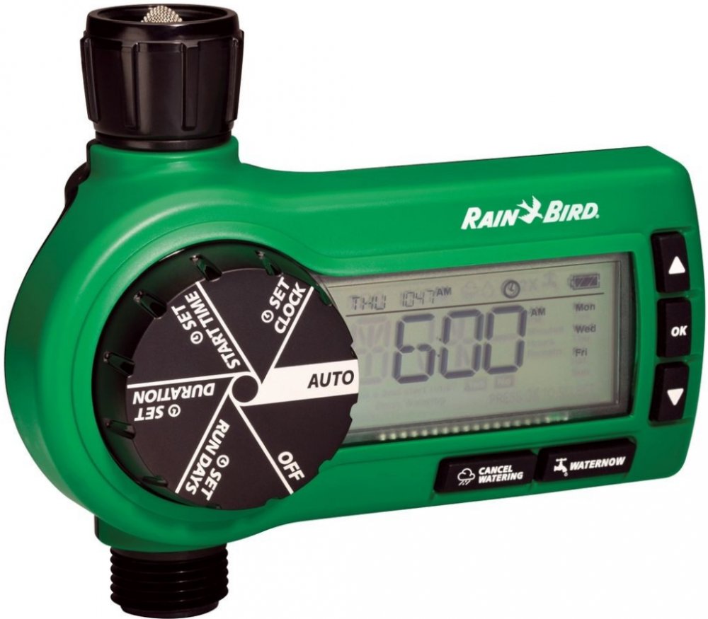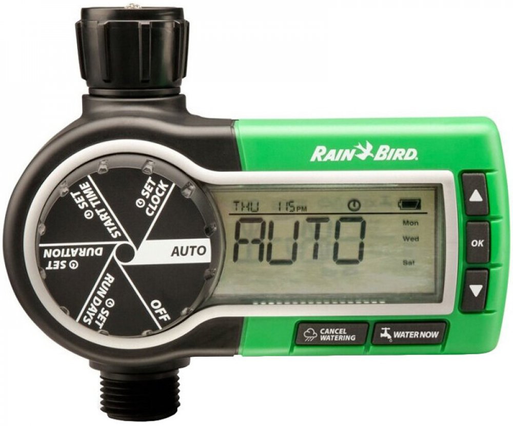 Rain Bird TIMER 1ZEHTMR digitální bateriová ovládací jednotka na kohoutekJednosekční digitální ovládací jednotka od Rain Bird na zahradní kohoutek se snadným ovládáním je skvělým komponentem k automatizování zavlažování.Rain Bird ovládací jednotka/časovač pro ovládání zavlažování jedné sekce při připojení na nástěnný zahradní kohoutek.