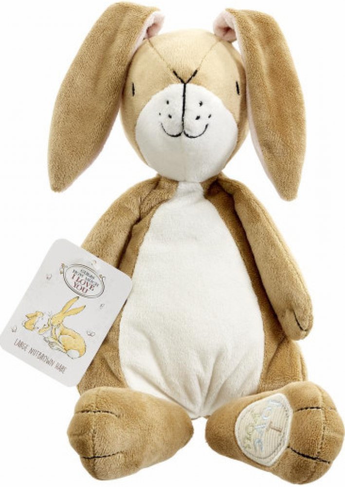 Plyšový zajíček z knížky „Hádej, jak moc tě mám rád“ bude perfektním dárkem nejen na narozeniny či pod stromeček. Plyšák má mnoho detailů, včetně vyšívaného obličeje a tlapky. Vhodné nejen pro děti, ale také jako dárek od dětí pro rodiče. Firma Rainbow Designs byla založena v roce 1971 mladým podnikatelem Mikem Muttersem. V té době neexistovala značka, která by měla v názvu Rainbow (duha) a proto zvolil toto jméno. Jejich cílem je přinést dětem do života jejich oblíbené postavičky ve fyzické formě plyšáků. Chtějí být nejlepší z nejlepších a jejich hračky jsou vyráběny pod přísnými standardy, také rozvíjí smysly dětí. První licencí Rainbow Designs byli všem známí Disney, vyráběli pro ně módní šperky jako brože, smaltované knoflíky, odznaky, ale také zástěry, batohy a přesky opasků. Po této spolupráci se nabídky jen hrnuly a Rainbow mohli do svého portfólia přidat firmy jako Noddy, The Wombles, Flower Fairies, Mašinka Tomáš a klasického Medvíka Pú. Koncem 70. let vyrobili pod licencí odznaky pro Buckinghamský palác a královnu Alžbětu II. Během roku 1980 až 2010 dále spolupracovali například na medvědovi Paddingtonovi, různých postavičkách Beatrix Potter, Elmerovi a dalších postavičkách ze Sezame, otevři se. V jejich portfóliu najdete i prasátko Peppa, králíčka Petera a další známé postavy.