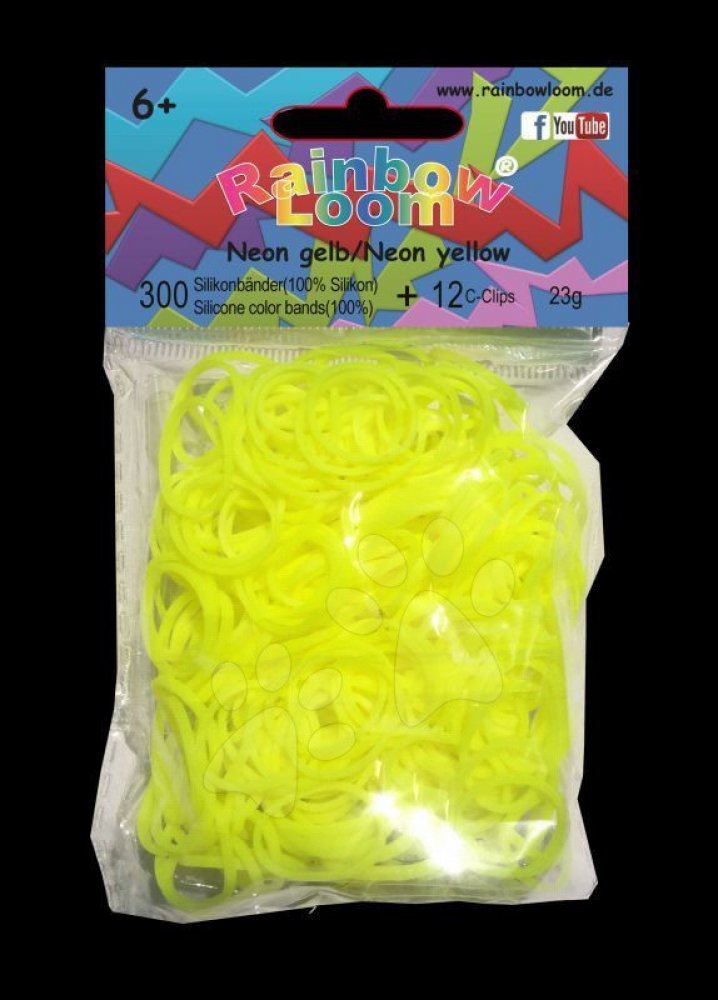 Rainbow Loom neónově žlté gumičky na vytvoření těch nejkrásnějších silikonových náramků jsou určeny pro děti od 6 let, ale umí s nimi pracovat i 5 leté děti. Dětské gumičky jsou bezolovnaté, bez ftalátů a BPA, díky čemuž jsou pevné, kvalitní a bezpečné pro děti. Balíček obsahuje 300 kusů neonových gumiček žluté barvy a 12 kusů malých plastových svorek "céček", pomocí kterých se náramek spojuje a d...