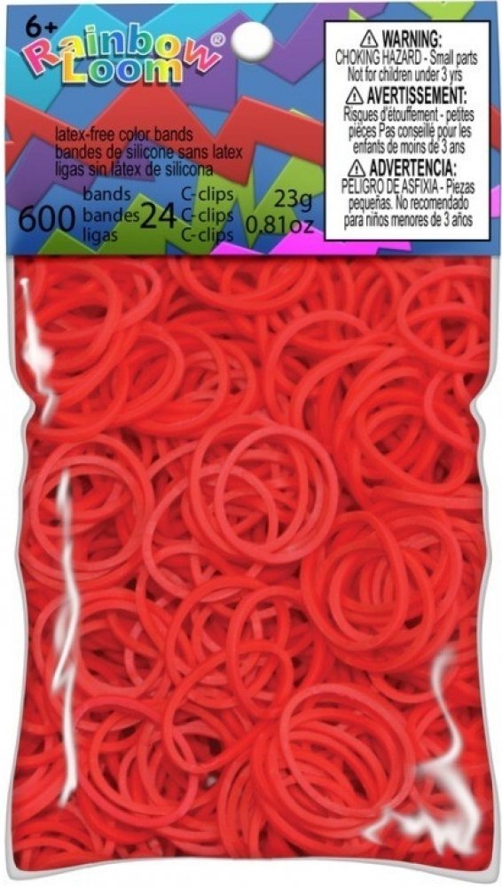 Originální balení gumiček v červené barvě jsou výbornou pomůckou pro výrobu různých náramků, prstenů, přívěsků či jiných ozdob.