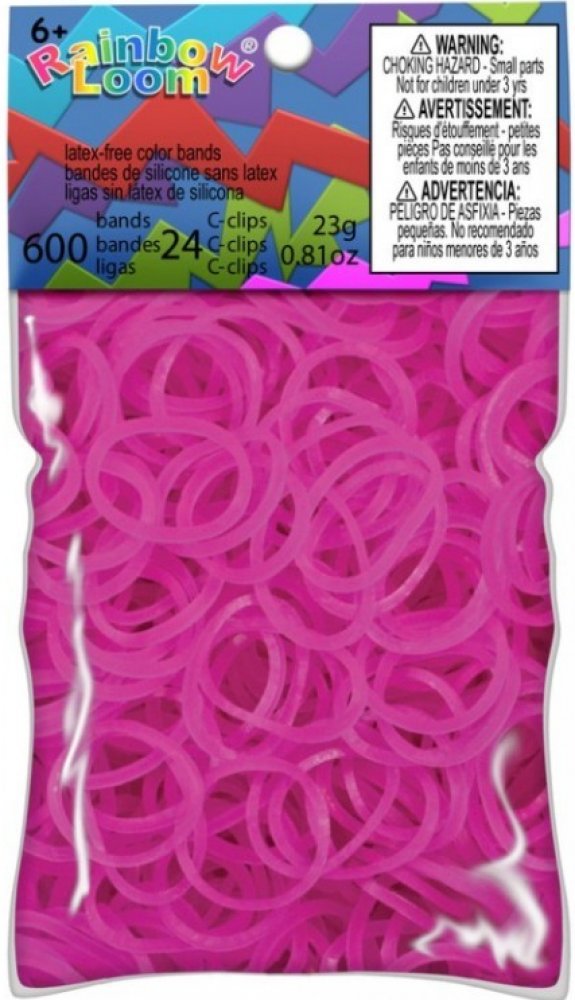 RAINBOW LOOM náhradné gumičky priesvitné sú bezolovnaté, bez ftalátov a BPA. Balíček obsahuje 600 kusov transparentných ružových gumičiek a 24 kusov "C" svoriek. Pre deti od 6 rokov, vedia s nimi pracovať aj 5 ročné deti.