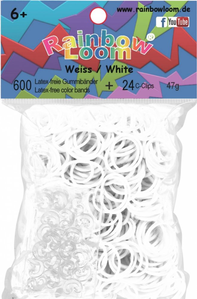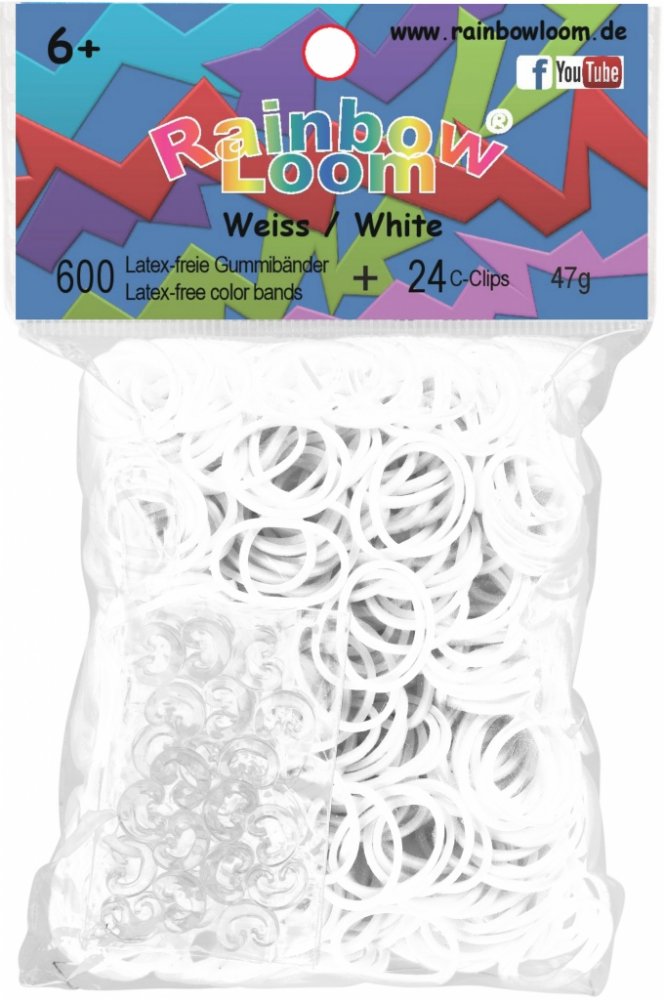 Originální balení bílých gumiček jsou výbornou pomůckou pro výrobu různých náramků, prstenů, přívěsků či jiných ozdob.