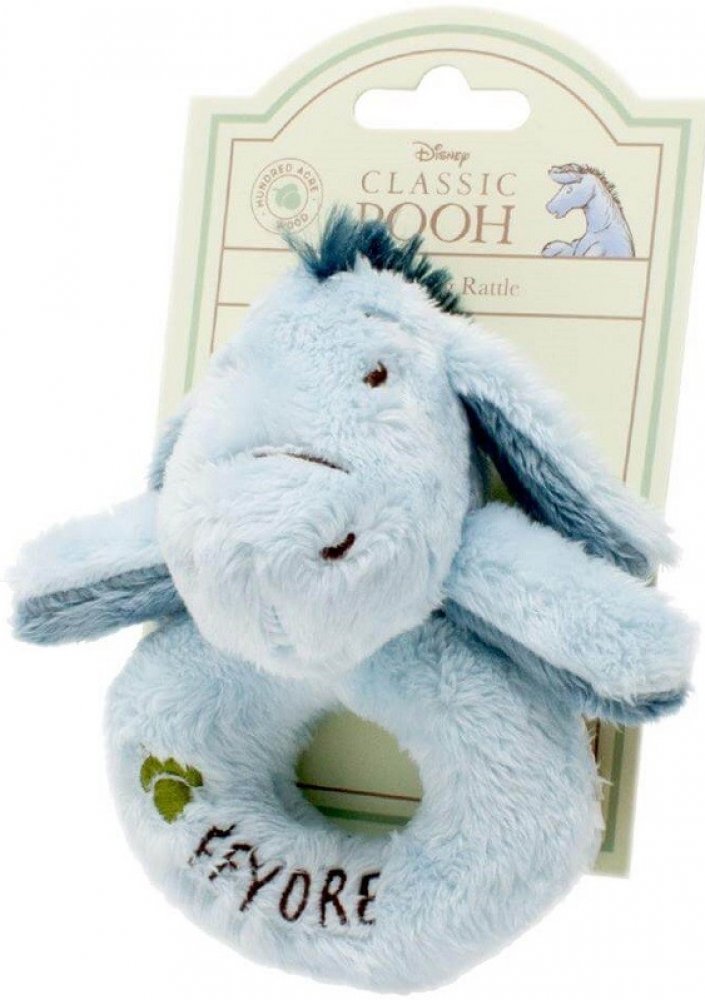 Super měkká hračka. Chrastítko oslík Ijáček z příběhů Medvídka Pú od A. A. Milne. Ijáček je vyroben z nejkvalitnější plyšové látky. Tato klasicky stylizovaná hračka obsahuje jemné chrastítko, které povzbuzuje dítě, aby prozkoumávalo své smysly prostřednictvím smyslové hry.