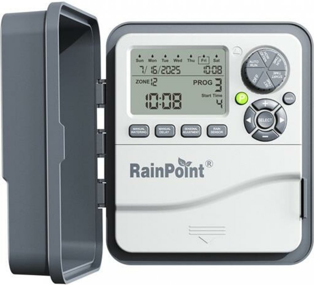 Vícezónová řídicí jednotka zavlažování RainPointSeznamte se s vícezónovým ovladačem zavlažování RainPoint - zařízením, které díky velkému, snadno čitelnému LCD displeji a intuitivnímu ovládání pomocí tlačítkového voliče umožňuje během několika okamžiků nastavit jeden ze tří programů, určit čas spuštění, čas a frekvenci zavlažování a navíc plně přizpůsobit individuální plány pro každou zónu. Funkce přizpůsobení frekvence zavlažování pro každý měsíc umožňuje úsporné zavlažování v zimě a na podzim a intenzivní ochranu rostlin v létě a na jaře, zatímco připojení k dešťovému senzoru s pokročilým zpožděním zaručuje inteligentní pauzu v zavlažování po dešti. Vestavěná baterie udrží naprogramované vzorce i při výpadku proudu, takže vaše zahrada vždy dostane ideální dávku vody.Intuitivní ovládáníRainPoint umožňuje okamžité programování pomocí jednoduchého voliče a tlačítek, takže i člověk bez zkušeností s automatizací zahrady nakonfiguruje zařízení během několika okamžiků. Vyberte si ze tří přednastavených programů, nastavte čas spuštění, určete dobu zavlažování od 1 minuty do 4 hodin a zvolte frekvenci - dny v týdnu, denní intervaly, sudé nebo liché dny. Díky velkému, dobře čitelnému LCD displeji (displej z tekutých krystalů) máte všechny nejdůležitější parametry vždy na očích, žádné dohady, žádné nečitelné symboly.Úspornost a efektivitaRegulátor RainPoint umožňuje nastavit plnou sezónní regulaci od 10 % do 200 %. Na jaře a na podzim vám stačí jen zlomek standardní dávky, v létě zvýšíte zavlažování až na dvojnásobek, abyste se vyrovnali s největšími vedry. Toto řešení šetří vodu a snižuje náklady na účty, přičemž vaše rostliny budou optimálně zavlažovány po celý rok.Chytrá ochrana rostlin a zařízeníSystém RainPoint automaticky zastaví zavlažování ve vybraných zónách, když zjistí srážky. Přitom můžete nastavit výjimky - umožnit vybraným zařízením pokračovat v provozu, zatímco ostatní zůstanou vypnutá. Dešťový senzor a možnost definovat zpoždění zajistí, že nepromarníte ani kapku vody. Výpadek proudu? S RainPointem žádný problém. Vestavěná záložní paměťová baterie uchová celou konfiguraci programů a rozvrhů, takže po obnovení napájení řídicí jednotka okamžitě obnoví provoz podle vašich ujednání. RainPoint je synonymem spolehlivosti a klidu, ať už nastane jakákoli situace.Technické parametry:Rozsah provozních teplot: 3°C~50°CTeplota skladování: -10~50° CRozsah sezónního nastavení: 10%~200%Počet dostupných programů: 3Displej: LCDNapájení: Baterie (CR2032), síť (230V/120V AC)
