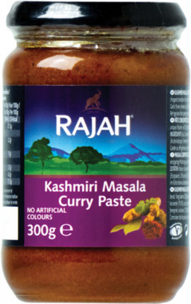 RAJAH Kashmiri Masala Curry Paste o objemu 300 g je aromatická pasta určená k přípravě tradičních kašmírských pokrmů. Obsahuje směs koření, jako je koriandr, zázvor, římský kmín, anýz, chilli, pískavice, kurkuma, hořčice, hřebíček, skořice a bobkový list, což dodává pokrmům bohatou a intenzivní chuť.