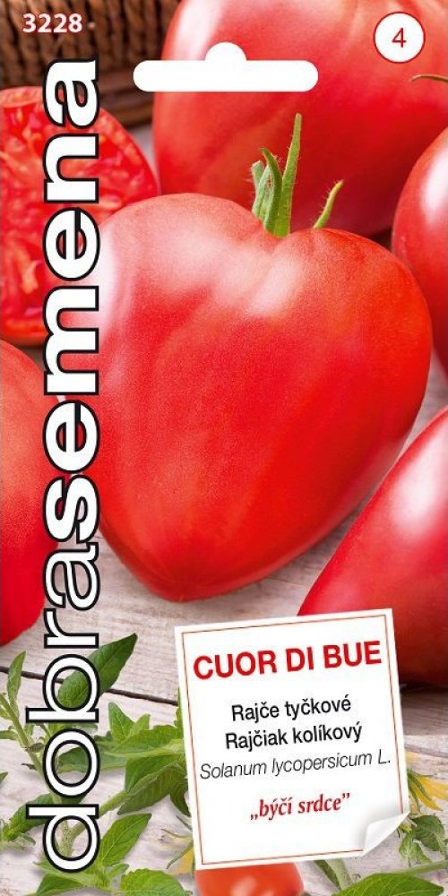 "Býčí srdce". Velké masité rajče dorůstající hmotnosti až 350 g. Plody jsou kapkovité, růžovočervené, s výtečnou chutí. Tyčková odrůda pro pole i fóliové kryty. Dodržujte vyrovnaný vláhový režim, předejdete tak praskání plodů.