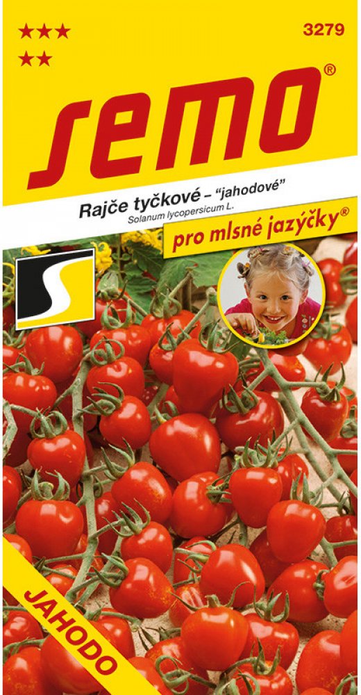 Rajče tyčkové Jahodo – název této rané odrůdy tyčkového rajčete vychází z tvaru a velikosti jeho plodů. Ten je opravdu jahodový s typickým žebrováním. Plody o hmotnosti 16 – 20 g jsou výtečně sladké chuti, ale přitom dlouhodobě skladovatelné a velmi odolné k praskání. Rajče tyčkové Jahodo vytváří větvený vijan plodů s násadou 16 a více plodů na vijanu. Jahodo je určeno především ke sklizni jednotl...