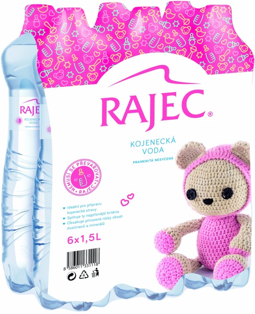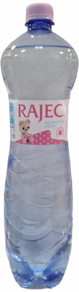 ZÁKONNÝ NÁZEV POTRAVINYKojenecká voda Rajec nesycená.SLOŽENÍKojenecká voda Rajec nesycená.ALERGENYNeuvádí seVÝŽIVOVÉ ÚDAJE/JEDNOTKAneuvádí seVÝŽIVOVÉ ÚDAJE/PORCEneuvádí seHMOTNOST/OBJEM1,5 litruPODMÍNKY UCHOVÁNÍUchovávejte v chladu a chraňte před přímým slunečním světlem. Chraňte před mrazem. Po otevření sk