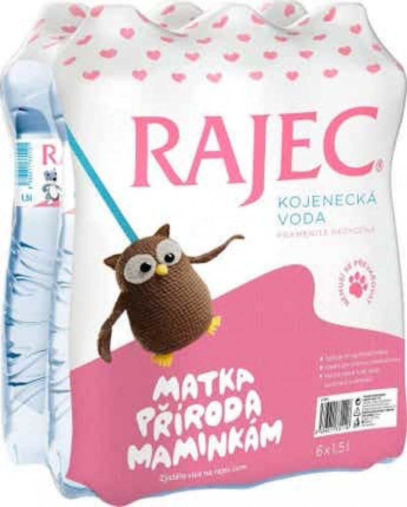 Cena se může v jednotlivých regionech lišit. -- To nejlepší pro Vaše dítě vytvoří příroda v Rajecké dolině sama. Uprostřed chráněné panenské přírody se rodí jedinečná pramenitá voda Rajec. Rajec Kojenecká voda splňuje ta nejpřísnější kritéria. Má vyvážený obsah minerálů a nemusí se převařovat. Je ideální pro pitný režim těch nejmenších a na přípravu kojenecké stravy. O VÝROBCI Rajecká dolina dostala do vínku krásu čisté přírody, poskytla domov množství vzácných tvorů a vytvořila pramen kvalitní a chutné vody, která občerstvuje její obyvatele od nepaměti. Dnes si můžete vychutnat osvěžení ze srdce Rajecké doliny i vy. ZAJÍMAVOST Málokdo ví, že silně mineralizovaná voda není ideální pro pravidelný pitný režim. Vysoký obsah minerálních látek ve vodě sice pomáhá při jejich nedostatku (třeba z důvodu špatné životosprávy či nemoci), ale při pravidelném pití zbytečně zatěžuje organismus. Pro zdravý pitný režim je ideální mineralizace vody mezi 150 – 400 mg/l, jak ji nabízí pramenité vody Rajec. UPOZORNĚNÍ Případné usazeniny či mikrofilm na hladině vody po převaření jsou projevem obsahu potřebných minerálů, vápníku a hořčíku, a nemají vliv na kvalitu vody. - 9.