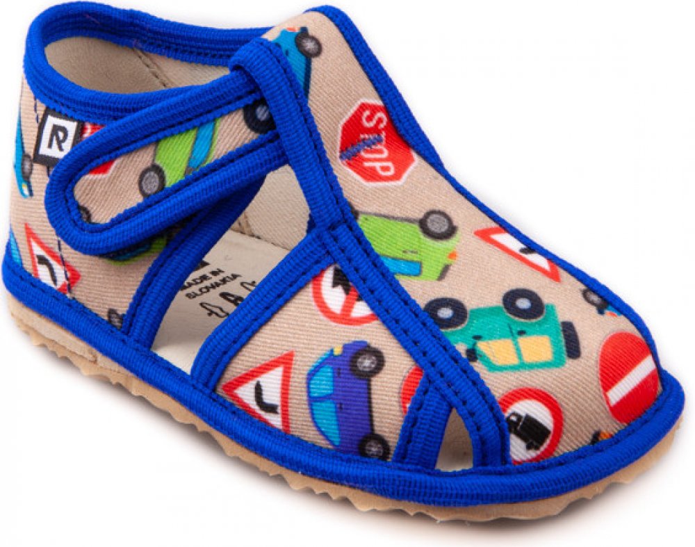 Tvar špičky s důrazem na typicky dětský dominantní paleček zajišťuje dostatečný prostor pro prsty. Elastická stélka zvyšující komfort při chůzi je z kombinace "paměťové" pěny a přírodní podšívkový kůže. Optimálně se přizpůsobí anatomickému 3D tvaru dětského chodidla v podélném i příčném profilu s důrazem na vytvoření patní jamky. Tato ve spolupráci s podpatkem podporuje kolmé postavení paty vůči podložce jako prevenci proti vybočení pat (valgozita, varozita). Podešev je pružná, ohebná, z materiálu na bázi přírodního kaučuku s protiskluzovým efektem i na hladké keramické, laminátové resp.lakované podlaze. Tenký klín z pružného materiálu pod patou tlumí nárazy na citlivou patní kost při skákání a běhání na tvrdých površích, na kterých se děti převážně pohybují. Pata nohy mírně zvýšená vůči podložce podporuje funkční zdatnost nohou. Chůze v takové obuvi je pružnější a méně únavná.Při koupi této obuvi si můžete být jisti, že jste pro pohodlí, bezpečnost a zdravý vývoj nožky Vašeho děťátka udělali správný krok.