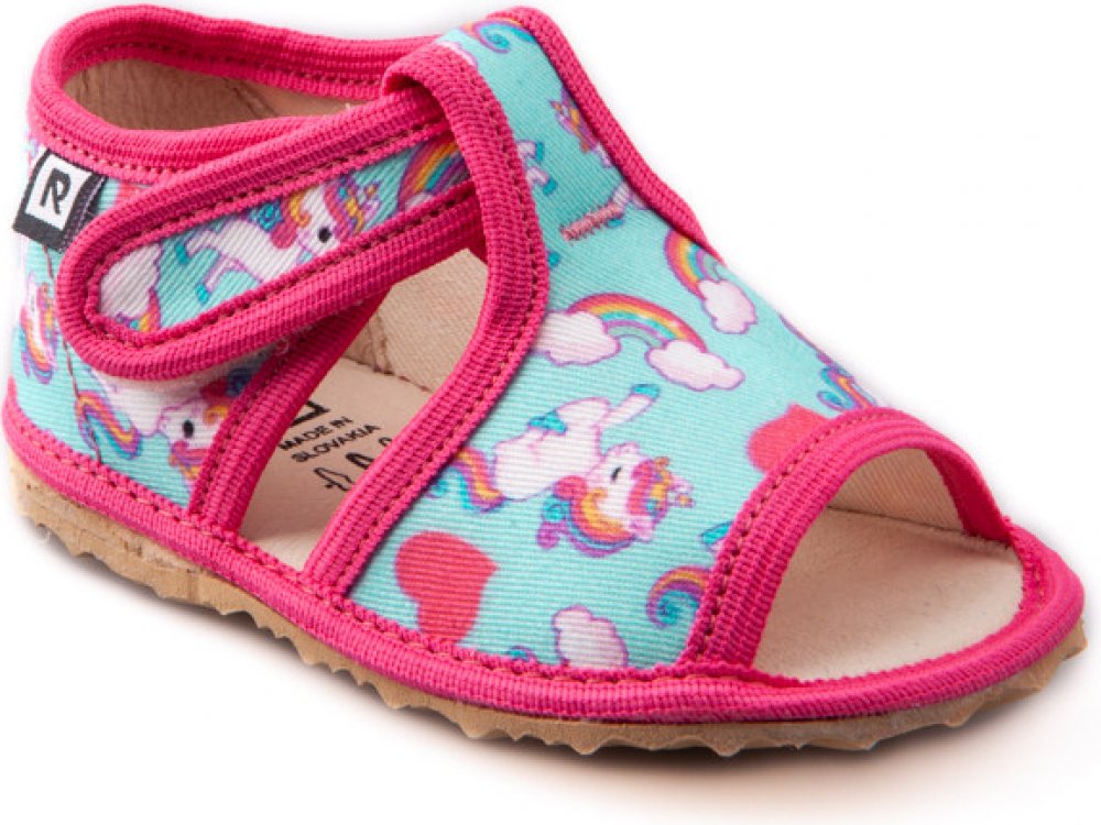 Tvar špičky s důrazem na typicky dětský dominantní paleček zajišťuje dostatečný prostor pro prsty. Elastická stélka zvyšující komfort při chůzi je z kombinace "paměťové" pěny a přírodní podšívkový kůže. Optimálně se přizpůsobí anatomickému 3D tvaru dětského chodidla v podélném i příčném profilu s důrazem na vytvoření patní jamky. Tato ve spolupráci s podpatkem podporuje kolmé postavení paty vůči podložce jako prevenci proti vybočení pat (valgozita, varozita). Podešev je pružná, ohebná, z materiálu na bázi přírodního kaučuku s výrazným protiskluzovým efektem i na hladkých a lesklých površích. Tenký klín z pružného materiálu v části podešve pod patou tlumí nárazy na citlivou patní kost při skákání a běhání na tvrdých površích, na kterých se děti převážně pohybují. Pata nohy mírně zvýšená vůči podložce podporuje funkční zdatnost nohou. Chůze v takové obuvi je pružnější a méně únavná.Při koupi této obuvi si můžete být jisti, že jste pro pohodlí, bezpečnost a zdravý vývoj nožky Vašeho děťátka udělali správný krok.