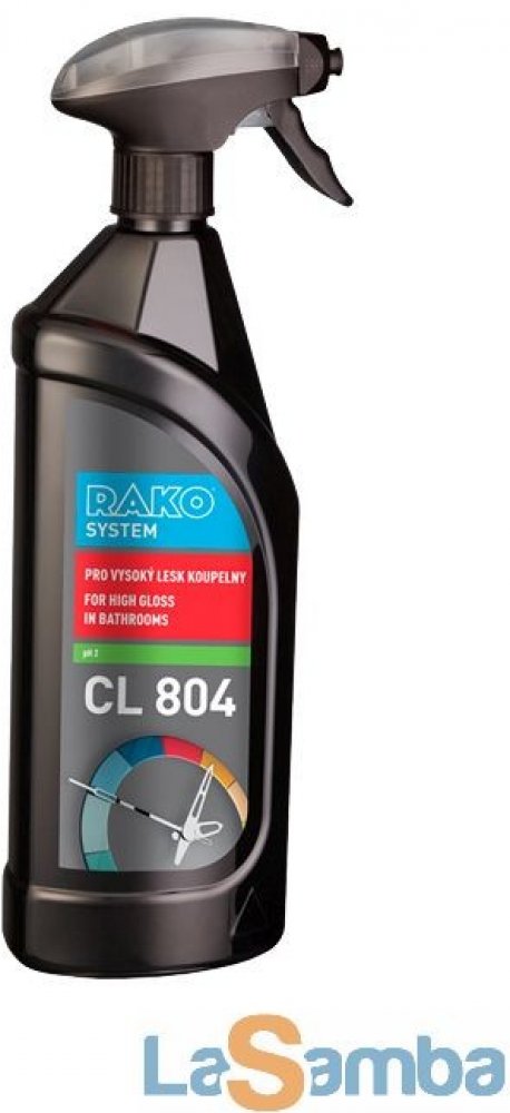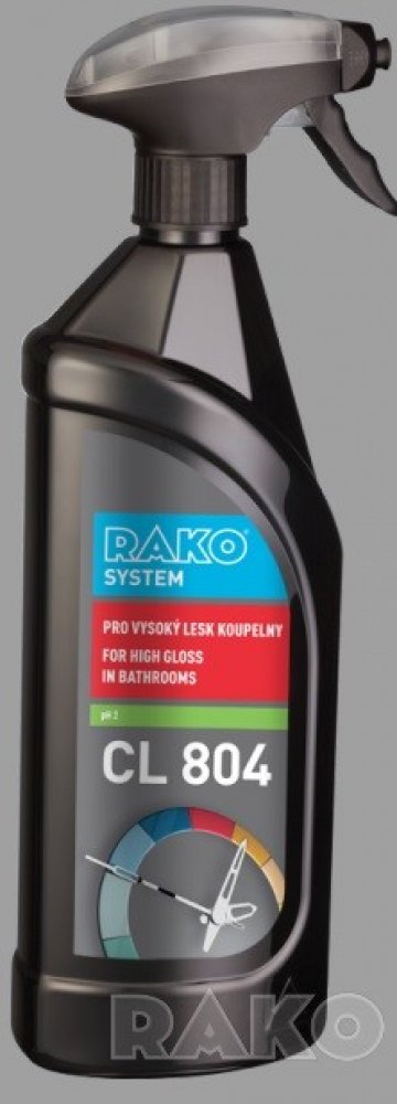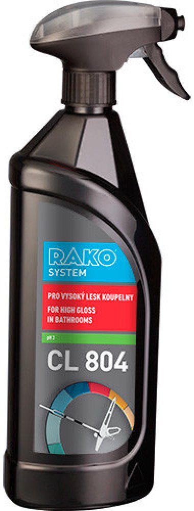 CL804 je zárukou perfektně vyleštěné koupelny. Prostředek je vhodný k mytí obkladů, umyvadel, van, sprchových koutů, baterií, vnějších částí toaletních mís apod. Přípravek snadno odstraňuje skvrny a nánosy vodního kamene, obsahuje lesk, který zpomaluje znečištění povrchu a dlouhodobé zlepšuje vzhled leštěných a chromovaných povrchů. Není vhodný na povrchy, které nemají odolnost proti kyselinám. Te...