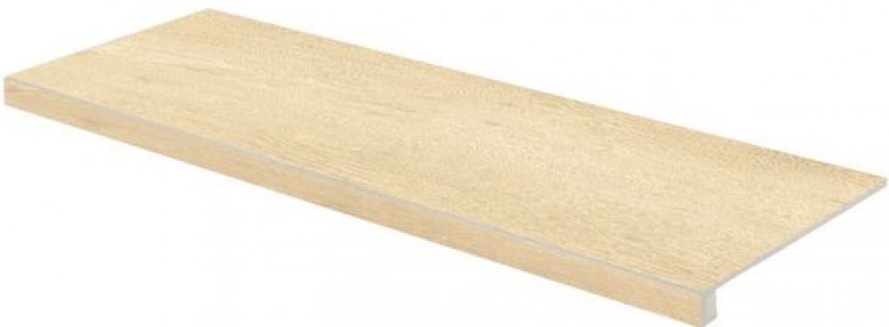 Rektifikovaná, mrazuvzdorná schodová tvarovka v barvě béžová v designu dřevo o rozměru 29,8 x 119,8 cm a tloušťce 9 mm. Matný, reliéfní povrch s velkými odchylkami v kolísání odstínů barev, struktury a kresby. S vyšším stupněm otěruvzdornosti PEI 4. Vhodné do interiéru, v exteriéru s ohledem na nižší stupeň protiskluzu spíše do prostor krytých před deštěm a sněhem.