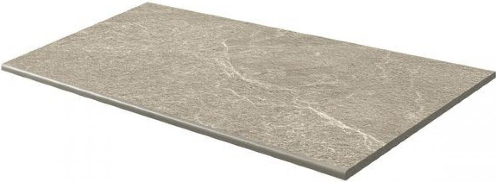 Rektifikovaná, mrazuvzdorná schodovka v barvě béžová v designu kámen o rozměru 59,8 x 119,8 cm a tloušťce 20 mm. Matný, reliéfní povrch s velkými a zcela nahodilými odchylkami v kolísání odstínů barev, struktury a kresby. Vhodné do exteriéru k pokládce na terče, do štěrku či trávníku.