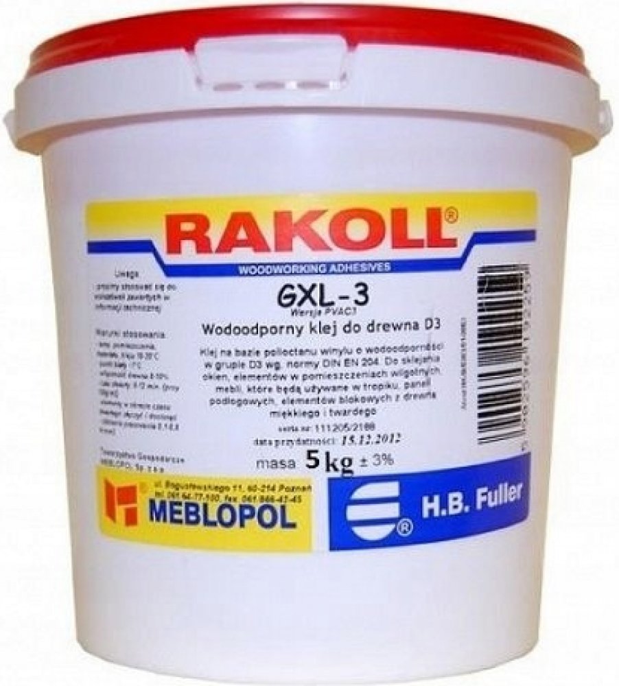 Univerzální jednosložkové disperzní lepidlo D3, určená pro lepení materiálů používaných v prostorách s vyšším výskytem páry a kondenzované vody, jako jsou kuchyně a koupelny. Vhodné pro korpusové, montážní lepení a plošné lepení. Dále pak pro stacionární olepování melaminových a dýhovaných hran, masivních dřevěných lišt (lepení spárovky, laťovky a bloků z měkkého i tvrdého dřeva).PVAC-lepidlo, které při jednosložkovém zpracování splňuje požadavky skupiny D 3. Vytvrzený lepený spoj se vyznačuje dobrou odolností vůči vyšším teplotám.- dobrá voděodolnost, vytvrzuje velmi rychle, při lisování za tepla umožňuje velmi krátké lisovací časy- velká odolnost proti vodě dle EN 204 pro měkké a tvrdé masivní dřevo. Rychle vytvrzuje, zvláště za působení teploty. Vytváří elastické spáry s vysokou pevností. Smícháním s Härter GLX-3 splňuje požadavky třídy D4.- otevřený čas: cca. 8-10 min. 150 g/m2- spotřeba: 60-180 g/m2Aplikace, příklady použití: plošné lepení dekoračních, dýhování, lepení ve vysokofrekvenčním lisu, plošné lepení HPL/CPL v taktových lisech, lepení korpusů a montážní lepení, lepení spárovky a bloků z měkkého i tvrdého dřeva a dřevotřísky.