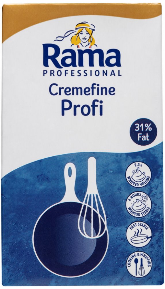 Multifunkční Rama je unikátní kombinací máslového mléka a rostlinných tuků. Zachovává chuťové vlastnosti smetany a je zároveň vhodná pro zapékání v troubě. Po ušlehání zůstává sněhově bílá a stabilní až dvě hodiny při pokojové teplotě.