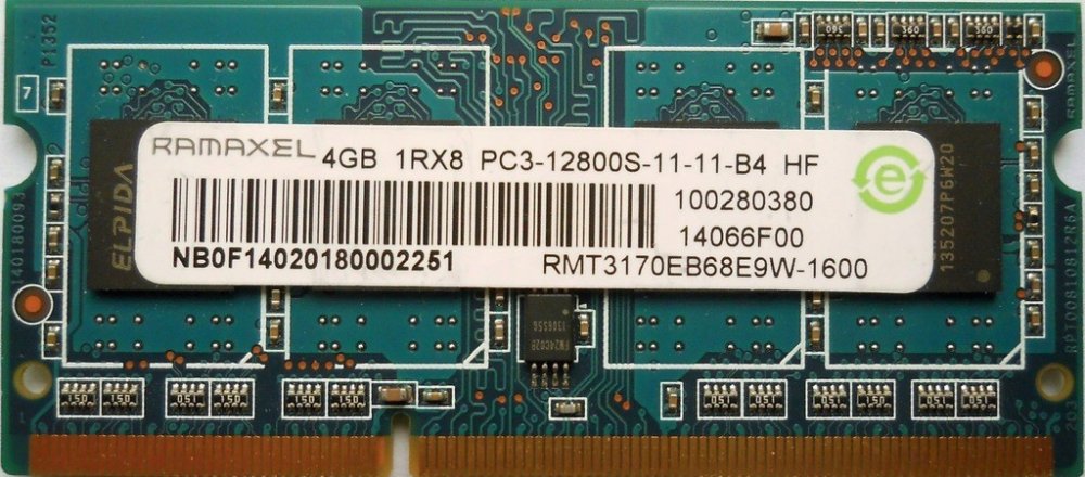 Modelová řada: RAMAXEL 4GB 1Rx8 PC3-DDR3-12800S RMT3170EB68E9W-1600
