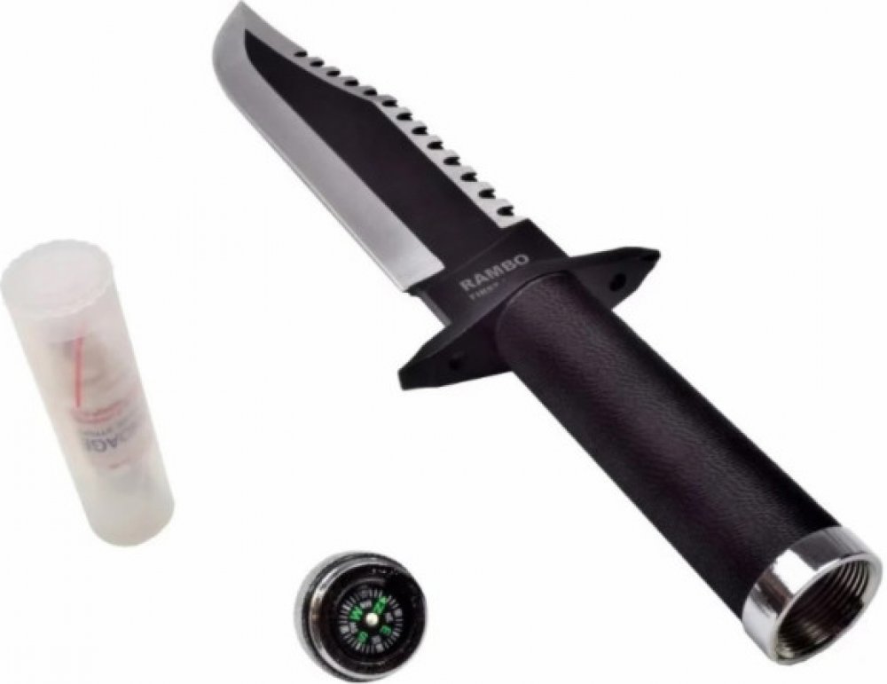 Nůž má stejně jako originál MINI SADA PRO PŘEŽITÍ v rukojeti.