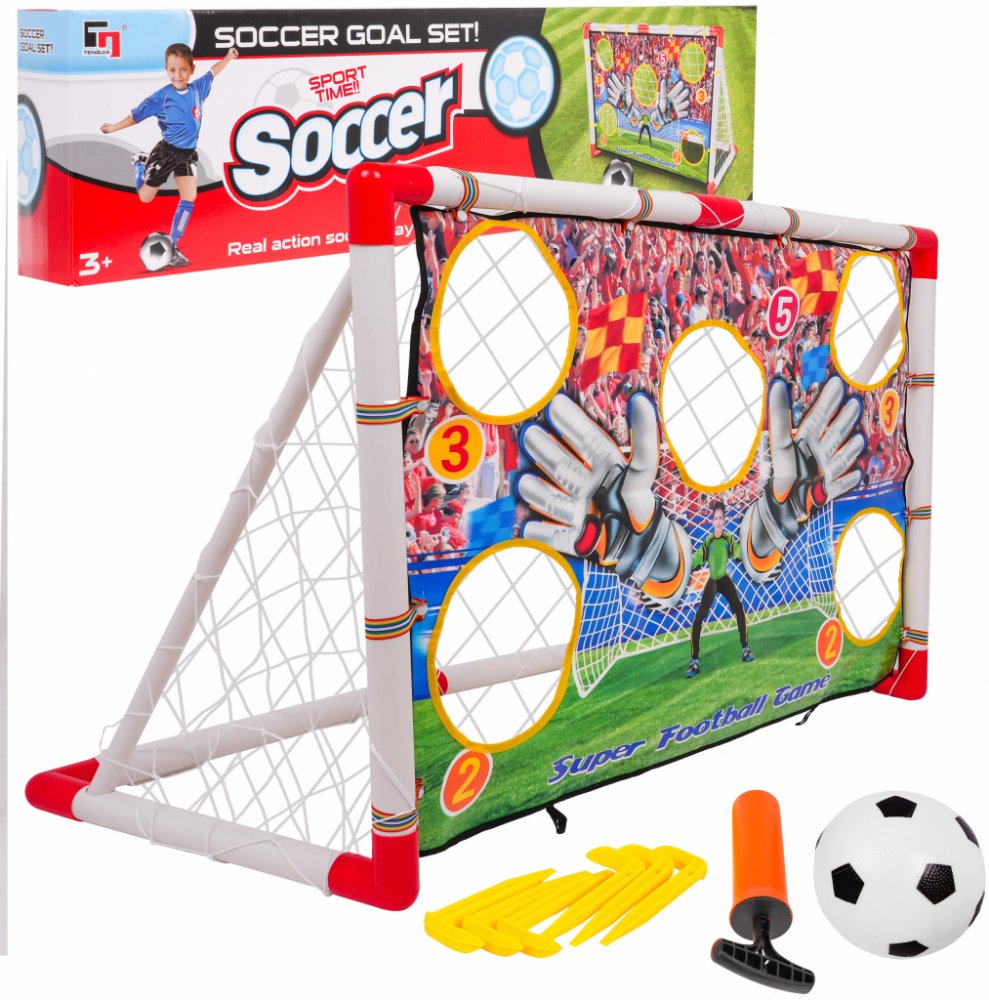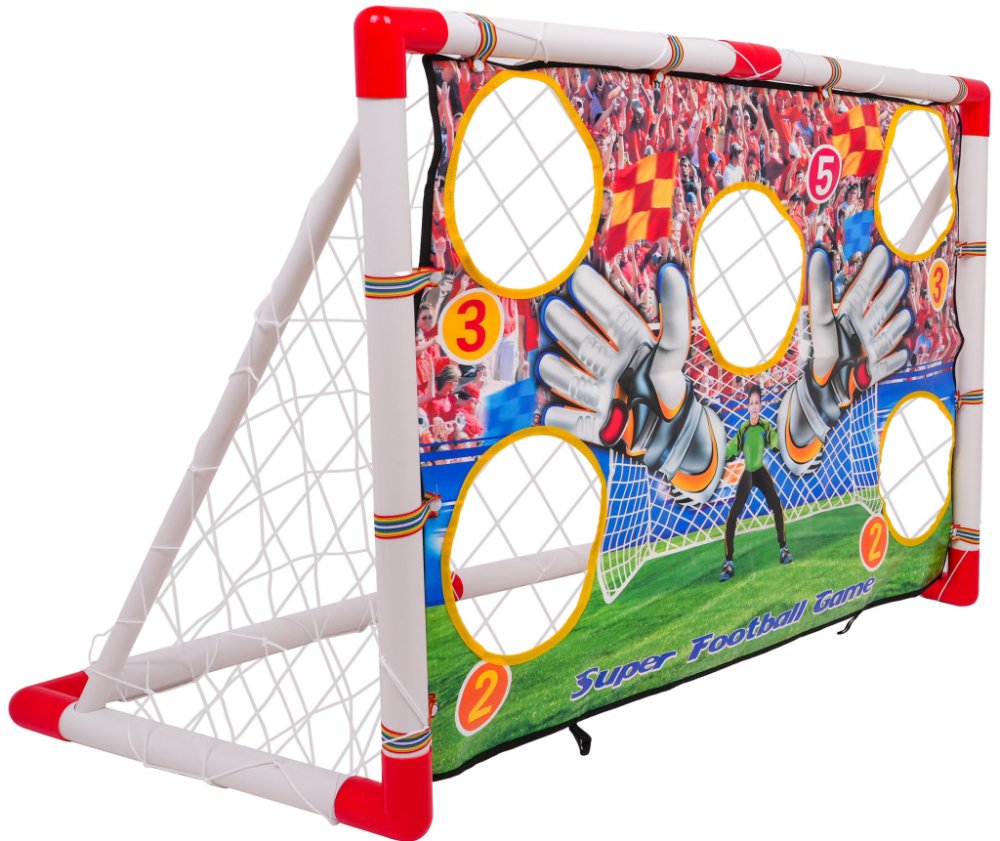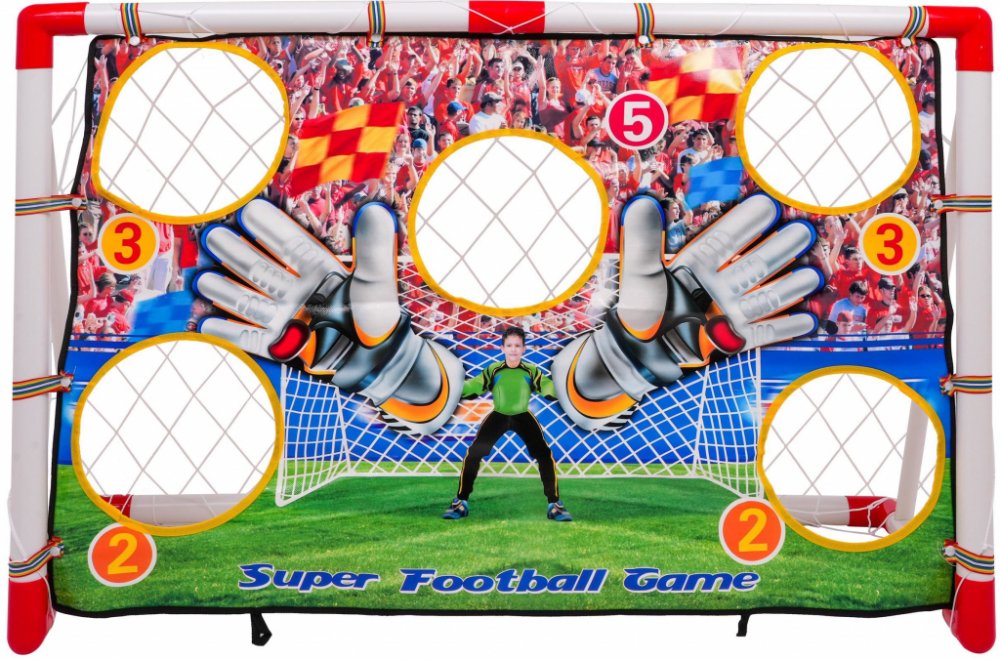 Dětská fotbalová branka s cvičnou tréninkovou plachtou je ideální pro děti od 3 let. Plachta má otvory s bodovým označením, které umožňují procvičit přesnost střelby – při zasažení otvoru hráč získává příslušný počet bodů. Tréninkovou plachtu lze snadno a rychle sundat, takže branka může sloužit i pro běžnou hru.