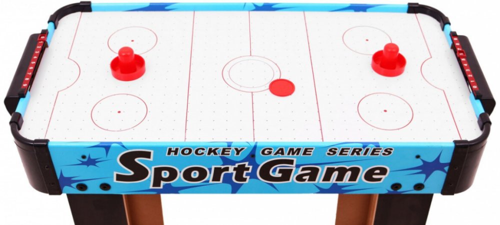 Sada Air Hockey CYMBERGAJ (A0015).Popis hryAIR HOCKEY - je typ populární arkádové hry určené pro dva hráče.Pro hru se používá speciálně připravený stůl.Povrch stolu je pokrytý otvory, kterými je vháněn vzduch.Tím se vytvoří vzduchový polštář, po kterém puk klouže bez kontaktu se zemí.Principy hryHráči stojí na opačných stranách stolu.Každý hráč používá speciální plastový nástroj, někdy nazývaný hř...