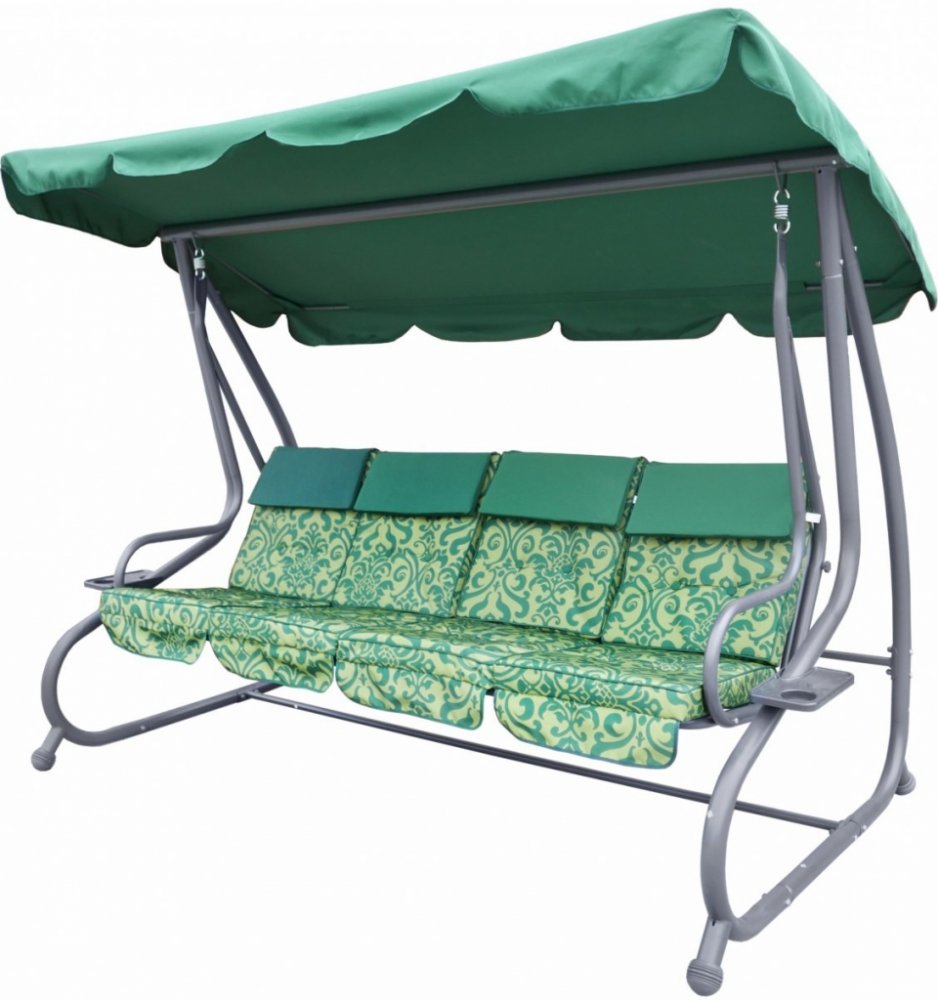 Zahradní houpačka se skládacím sedátkem a nastavitelnou stříškou, zelená se vzorem [8078 PATTERN Z].