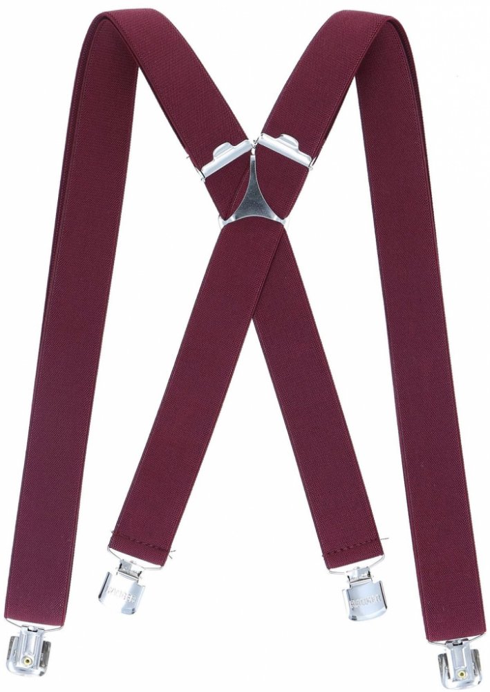 Pánské šle v bordó barvě jsou určeny pro všechny příznivce originálních doplňků jako stylový dárek. Šle jsou s nastavitelnou délkou 130 cm, šíře 3 cm v provedení ve tvaru písmene "X" s uchycením na žabky.