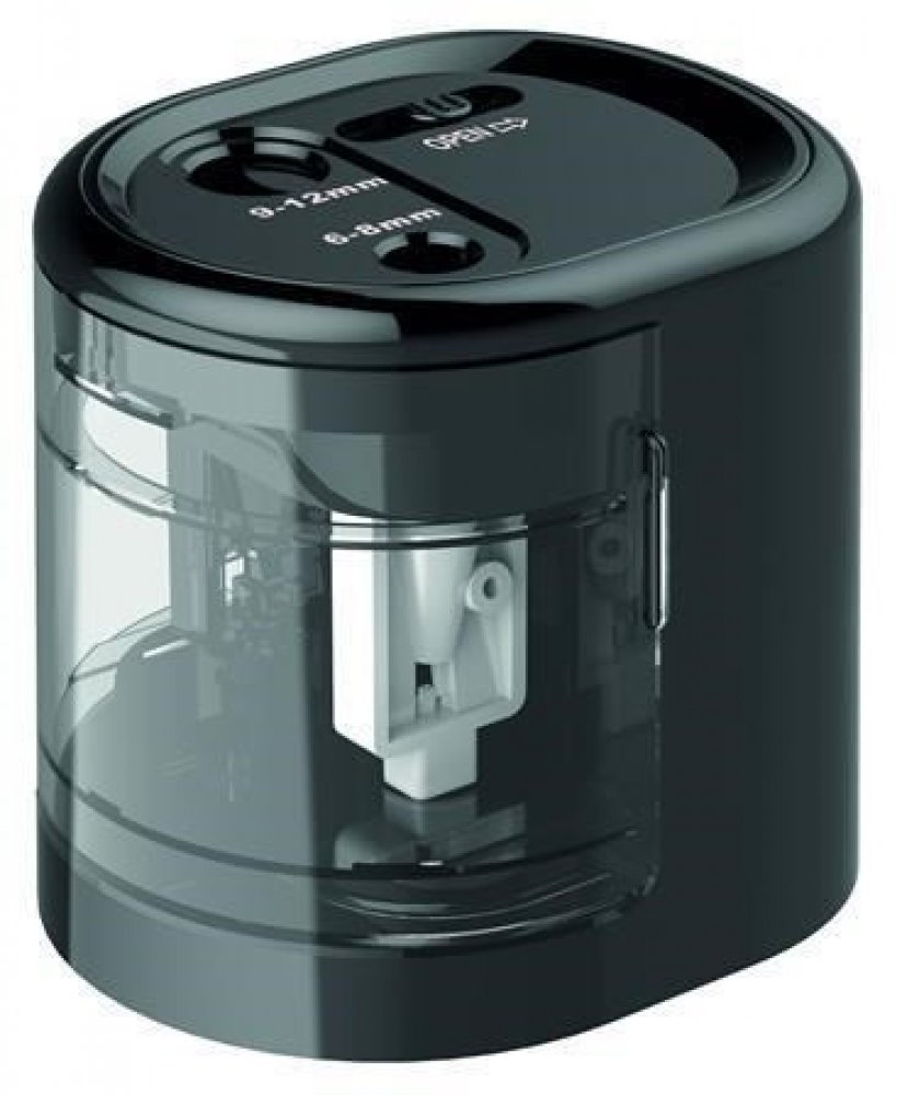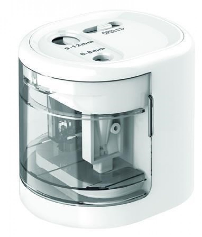 Stylové ořezávátko umožňuje rychlé a přesné ořezávání. 2 otvory s průměry tužek 6-8 mm a 9-12 mm. Jednoduché vyprázdnění nádobky s odřezky vysypáním do koše. Automatické vypnutí, které zastaví činnost při odejmutí krytky. Napájení kabelem USB (je součástí dodávky) nebo 4 bateriemi typu AA (nejsou součástí dodávky). Včetně vyměnitelných břitů - 2 velké a 2 standardní velikosti. Ideální pro grafitov...