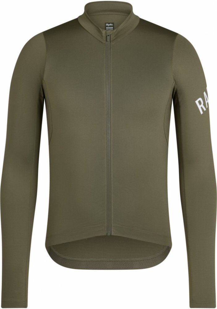 Výkonnostní pánský cyklistický dres Rapha Pro Team s dlouhým rukávem v zelené barvě. Aerodynamický střih, skvělý odvod vlhkosti a tepelný komfort pro tréninky i závody v chladnějším počasí.