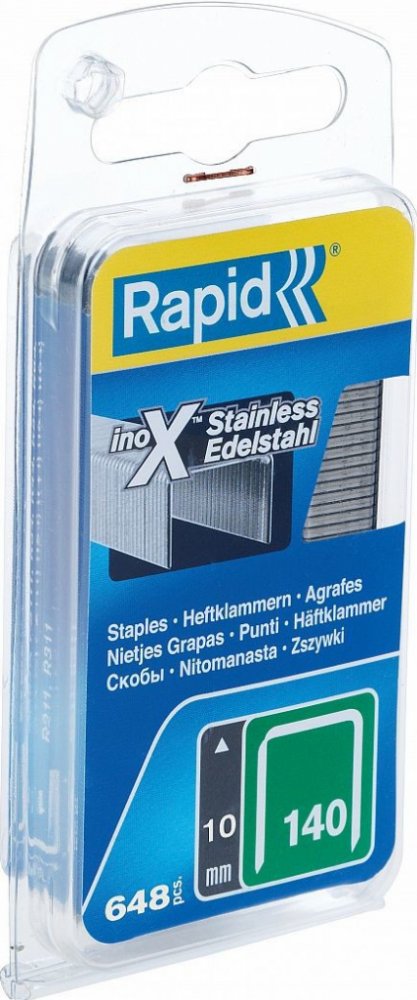 Rapid 40109575 - Spony do sponkovačky typ 140 výška 10 mm šíře 10,6 mm (balení 648 ks, blistr) NEREZ