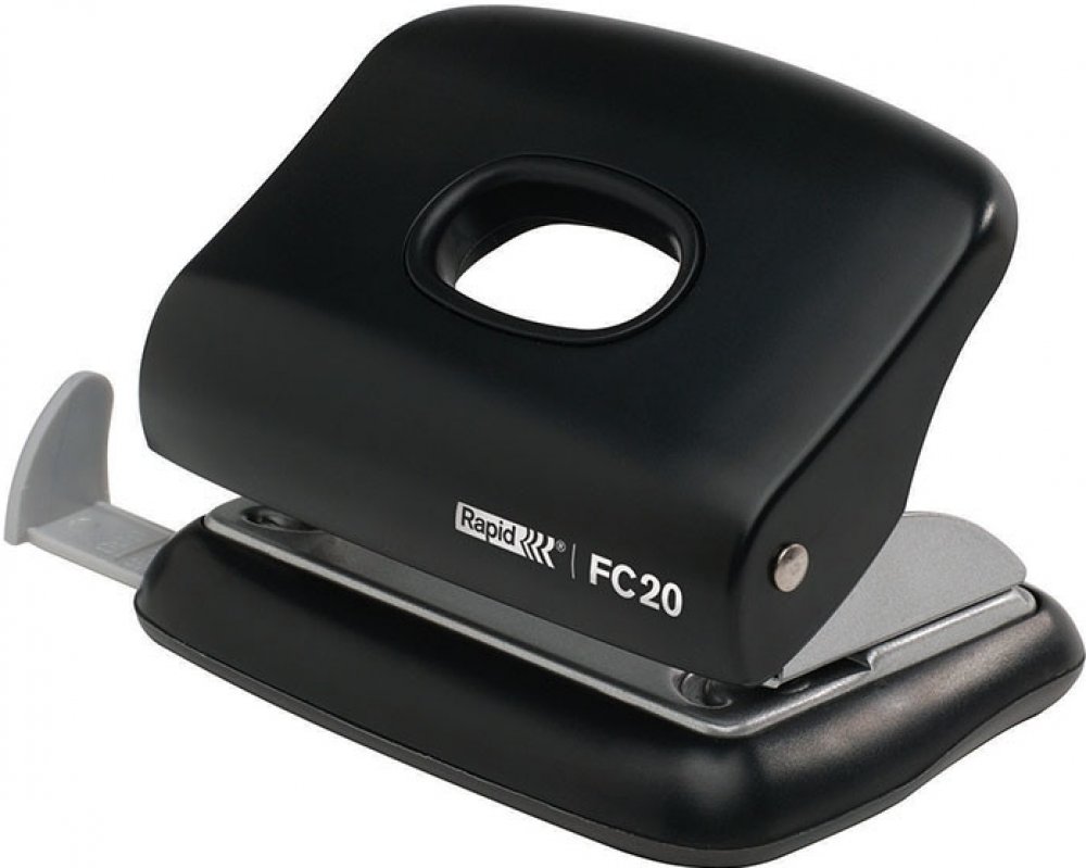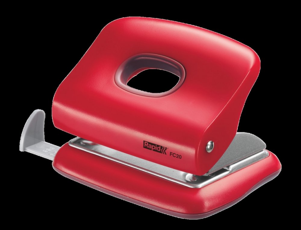 Odolná kovová děrovačka s ramenem a základnou z vyztuženého plastu ABS. Pro použití doma, ve škole i v kanceláři.