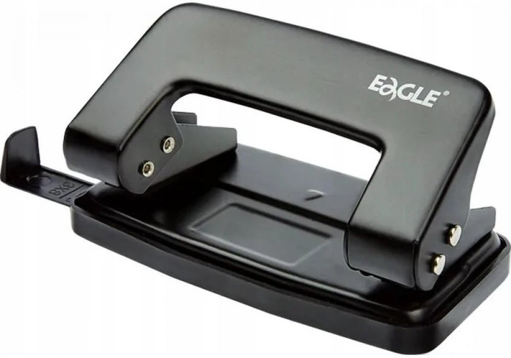 Výkonná odolná kovová děrovačka s ramenem a základnou z vyztuženého plastu ABS.