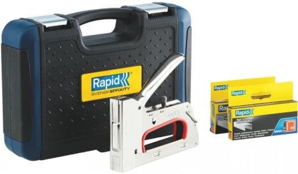 ruční, pákový mechanismus, indikátor naplnění, nastavení síly úderu a bezpečnostní pojistka, spony RAPID 53, délka spon 6-14 mm, šířka spon 11,4 mm, hmotnost 1,829 kg (5001380)