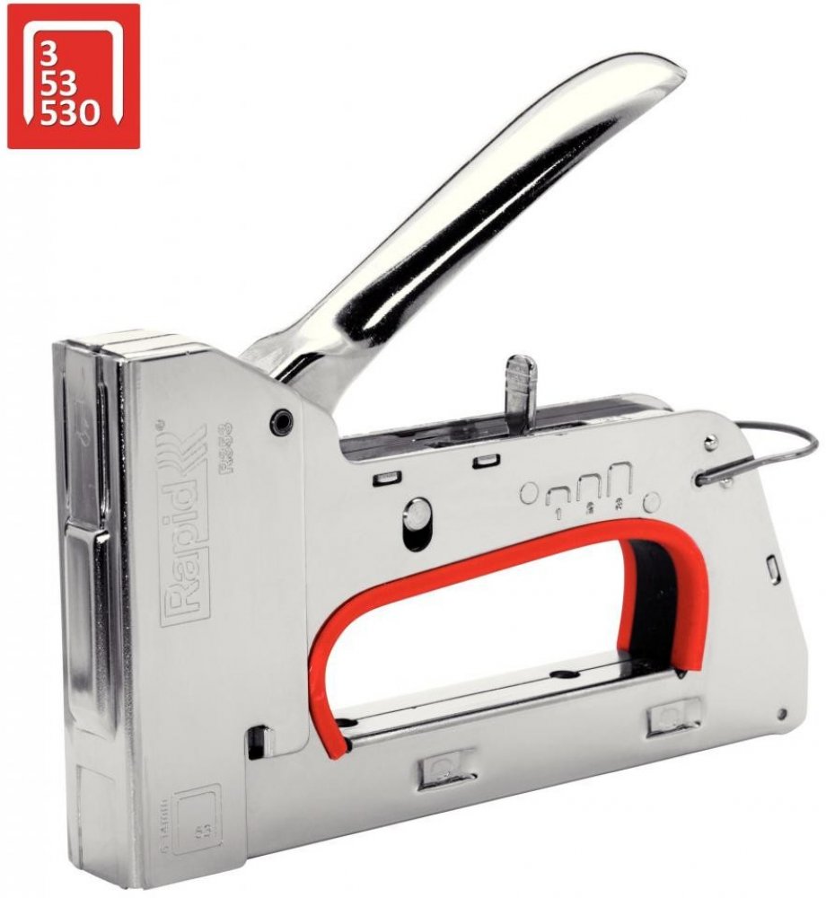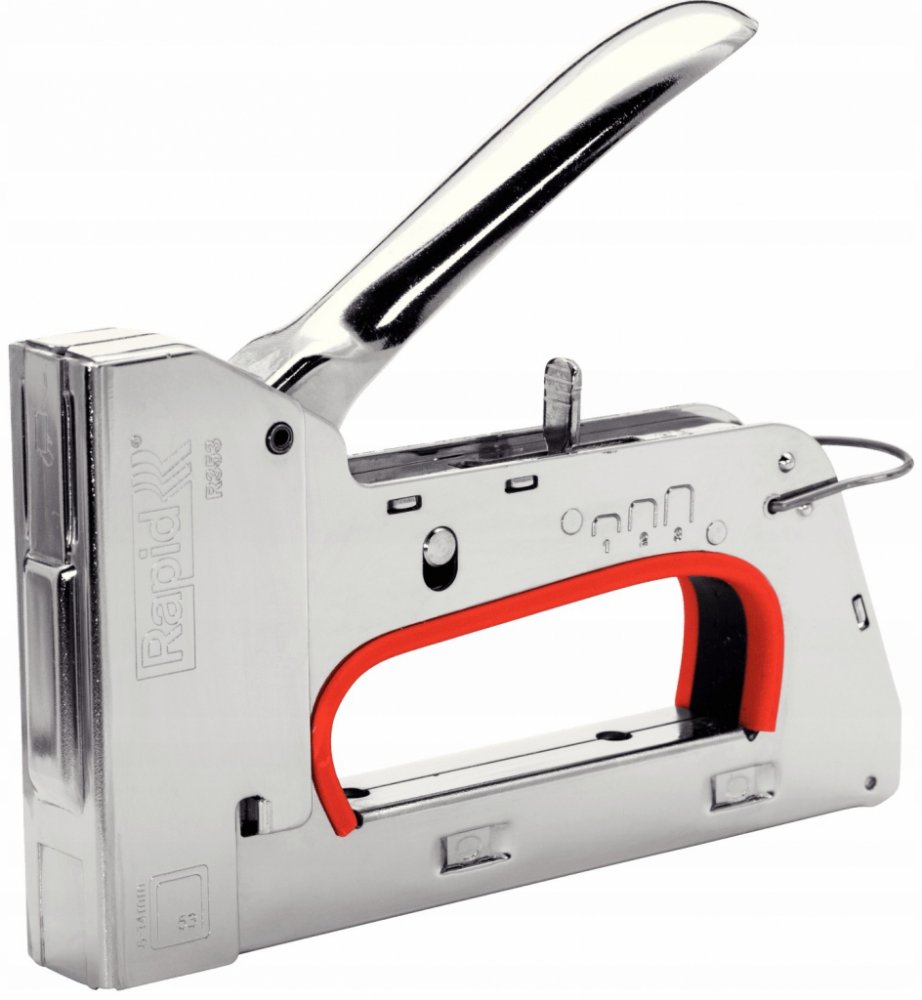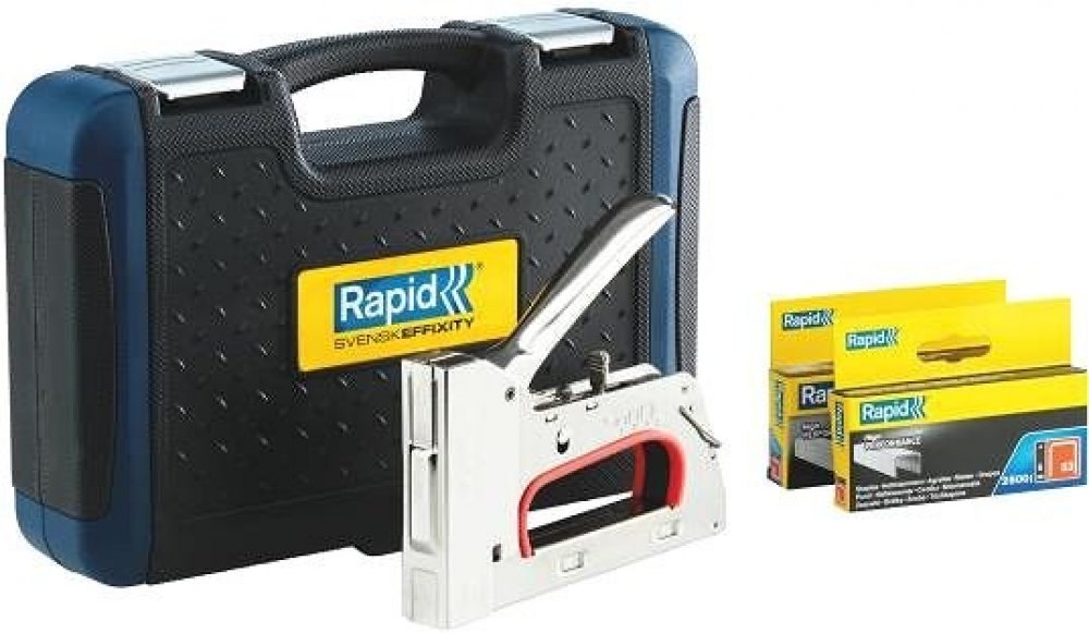 Ruční sponkovačka R353E od značky Rapid je ideální přístroj pro náročné domácí kutily i profesionální řemeslníky. Tato robustní ruční sponkovačka z kovu se skvěle hodí k použití na těžkých tkaninách, plátnu, kůži, papíru a mnoha dalších. Pro bezpečný a snadný provoz je ruční sponkovačka R353E vybavena patentovanou třístupňovou regulací síly příklepu, která snižuje sílu potřebnou při práci s krátkými a středně dlouhými sponkami až o 40 %, čímž odlehčuje svalům paží. Ruční sponkovačka R353E je vybavena dalšími praktickými detaily jako například funkcí aretace rukojeti pro snadné skladování nebo tlumením hluku. Práce je tak mimořádně tichá a bez zpětného rázu.