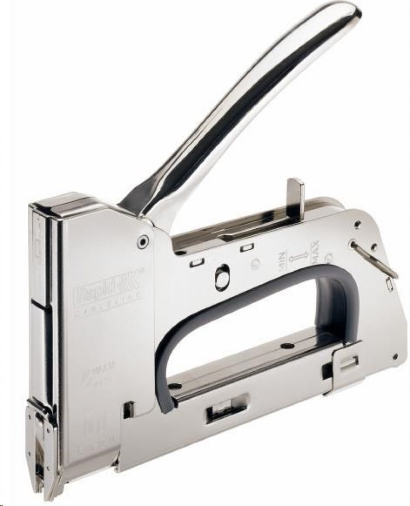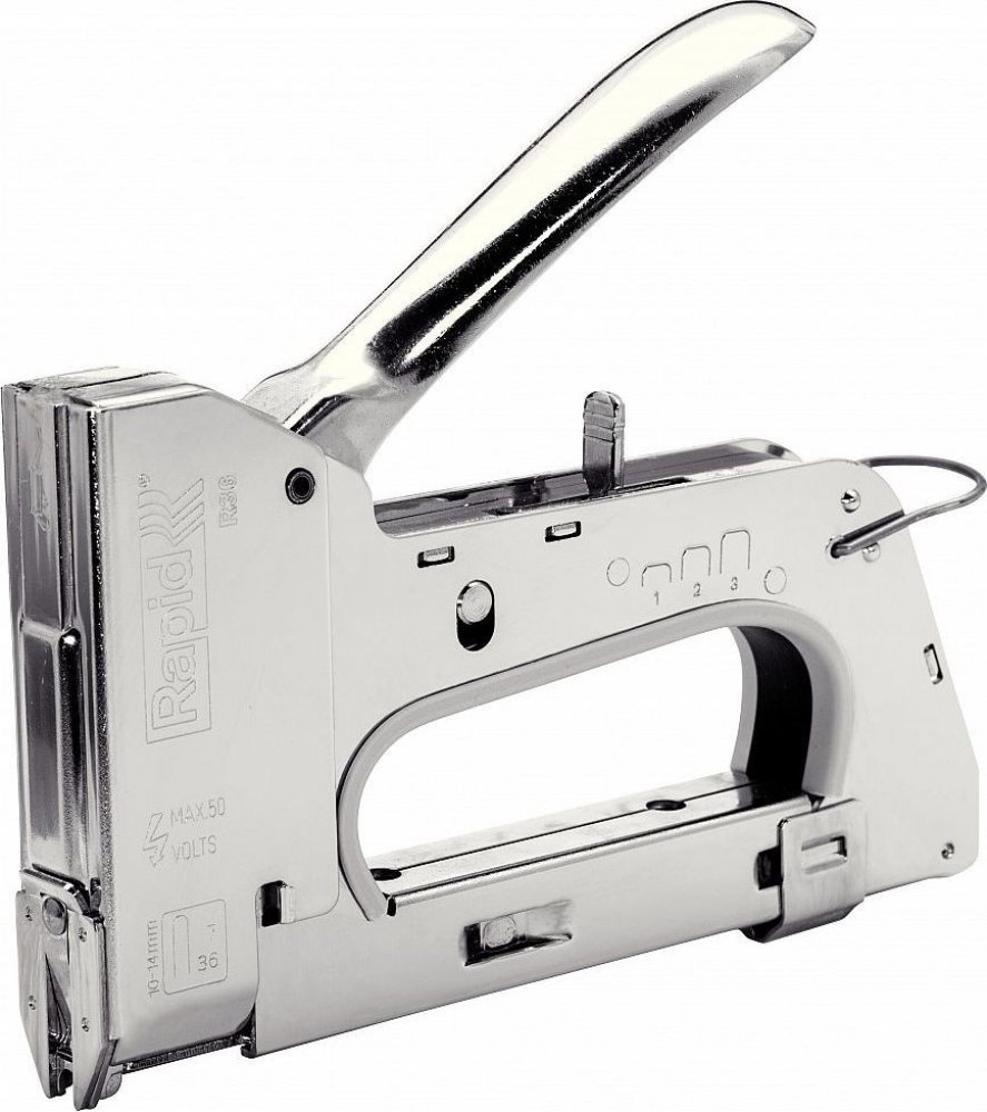 Jedinečná, vynikající kabelová sponkovačka pro různé náročné profesionální práce a přesné ovládání. Je speciálně navržena pro nízkonapěťové kabely do průměru 6 mm a je vybavena novou, patentovanou, snadno stisknutelnou spouští s třístupňovým nastavením síly, které lze upravit v závislosti na tvrdosti materiálu nebo průměru kabelu. Tato funkce také zajišťuje o 40 % snazší ovládání R36E. Ideální pro běžné, profesionální použití při upevňování nízkonapěťových kabelů pro reproduktory, telefony, antény nebo počítače. Sponkovačka ruční, disponuje těmito vlastnostmi: indikátor naplnění, zámek rukojeti a nastavení síly úderu