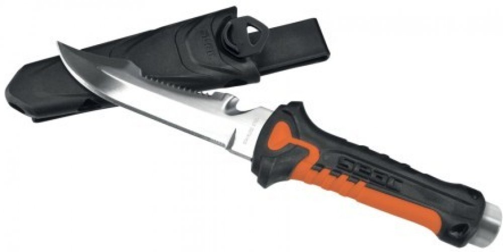 Nůž RAPID od společnosti SeacSub je vyroben z kalené oceli. Čepel má pilku a háček na jedné straně, což ocení každý potápěč.