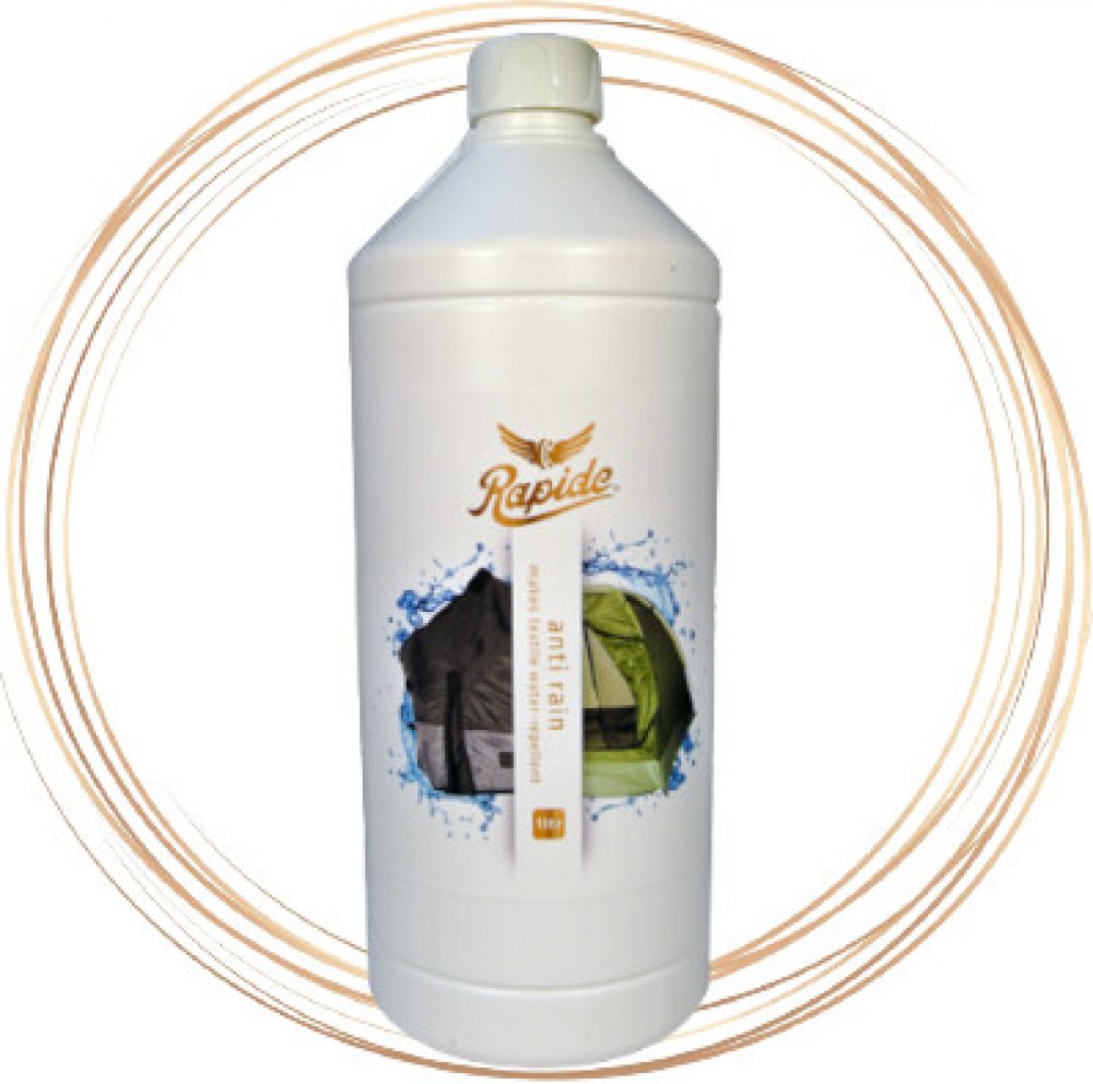 Rapide Anti Rain liquid je velmi kvalitní přípravek, který učiní materiály vodě odolnými. Chrání textilie z bavlny, plátna a směsných materiálů nejen proti vodě, ale i nečistotám a mastnotě. Je rychlý, snadno použitelný a velmi účinný. Je vhodný na deky pro koně, kočárky, stany, perseniky, biminy, plachty, deštníky, slunečníky, markýzy, rolety, atd. Výrobek Anti Rain 1000 ml Vám naimpregnuje 8 – 10 m2 plochy. Vydatnost 1000 ml je závislá na daném materiálu, který impregnujete. Obecně lze říci, že bavlna má vyšší savost (spodní hranice), než směsné materiály (horní hranice). Je nutné vzít rovněž v úvahu, zda byl impregnovaný materiál v minulosti něčím ošetřen. Upozornění: Mechanický rozprašovač není součástí balení