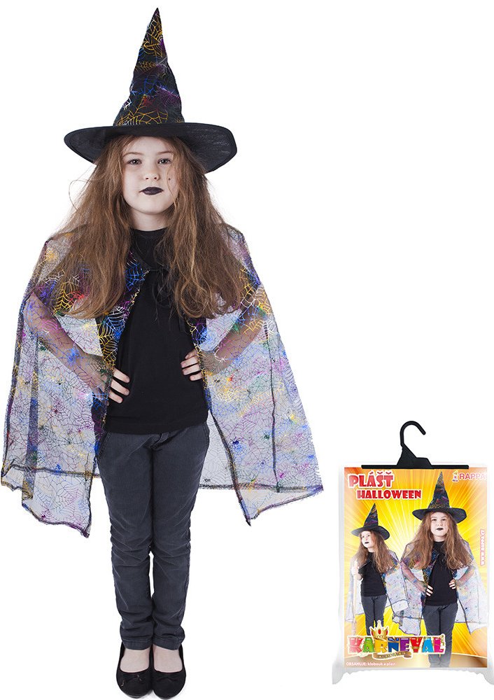 RAPPA čaroděj čarodějnice s pláštěm + kloboukem HALLOWEEN