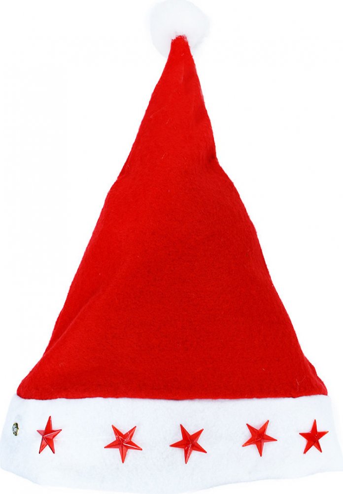 Krásná vánoční čepice s hvězdičkami, které blikají! Senzace! Perfektní doplněk na vánoční večírek! Čepice je vyrobena z filcu a obsahuje 2 ks baterií typu LR44. Stisknutím tlačítka na kraji čepice začnou hvězdičky na čepici blikat. Délka čepice ; 43 cm Věk ; 14+