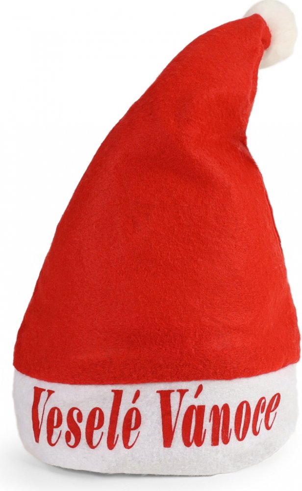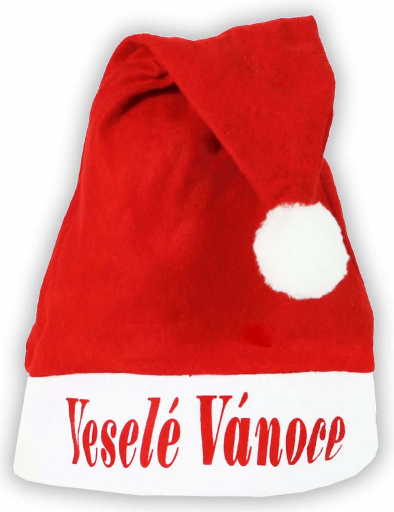 Vánoční čepice s nápisem Veselé Vánoce - 206571 Vánoční atmosféra je ve vzduchu a vy vyrážíte za zábavou? V tomto případě nesmíte zapomenout na typickou pokrývku hlavy! Červená vánoční čepice s bílým lemem a bambulkou je tím pravým co potřebujete! Bílý lem je doplněn o nápis VESELÉ VÁNOCE. Rozměry - 260 × 290 × 30 mm
