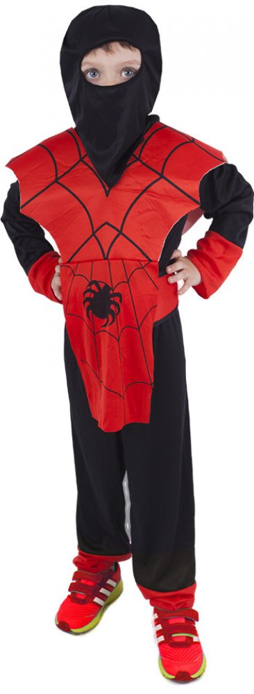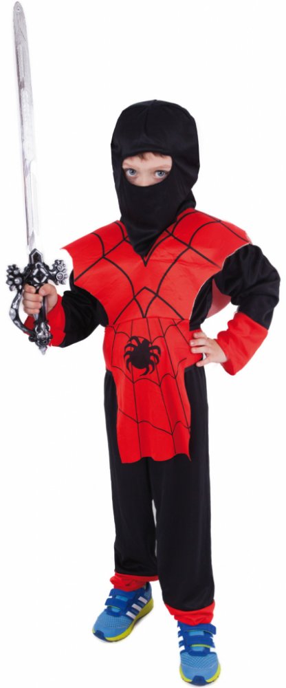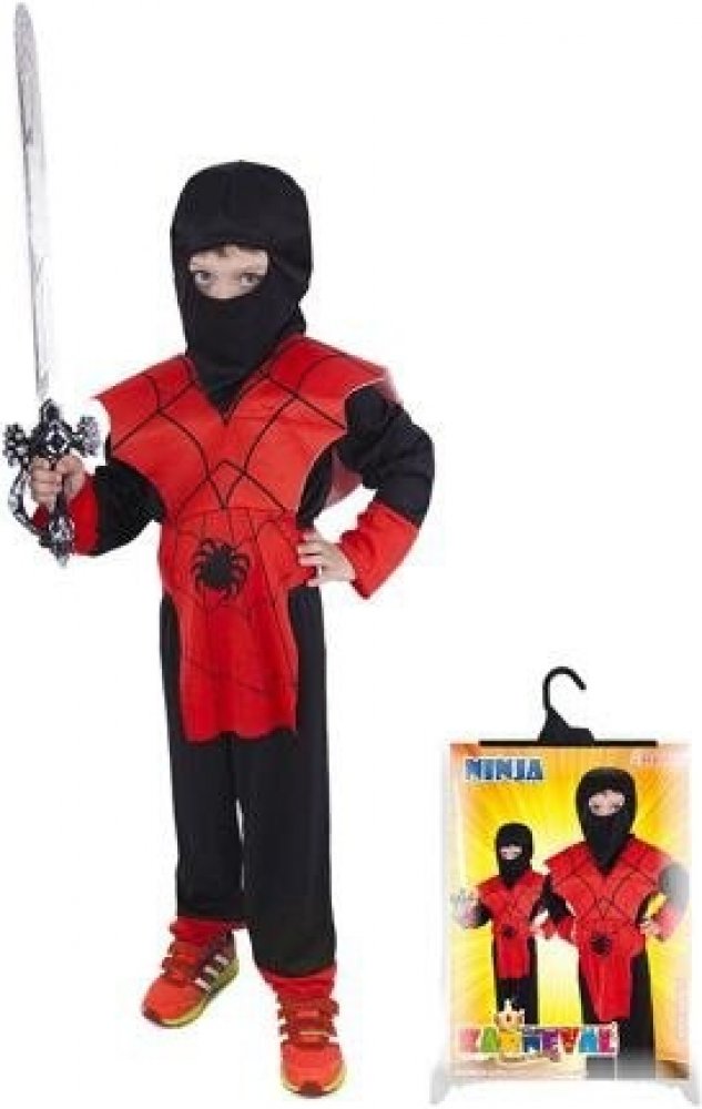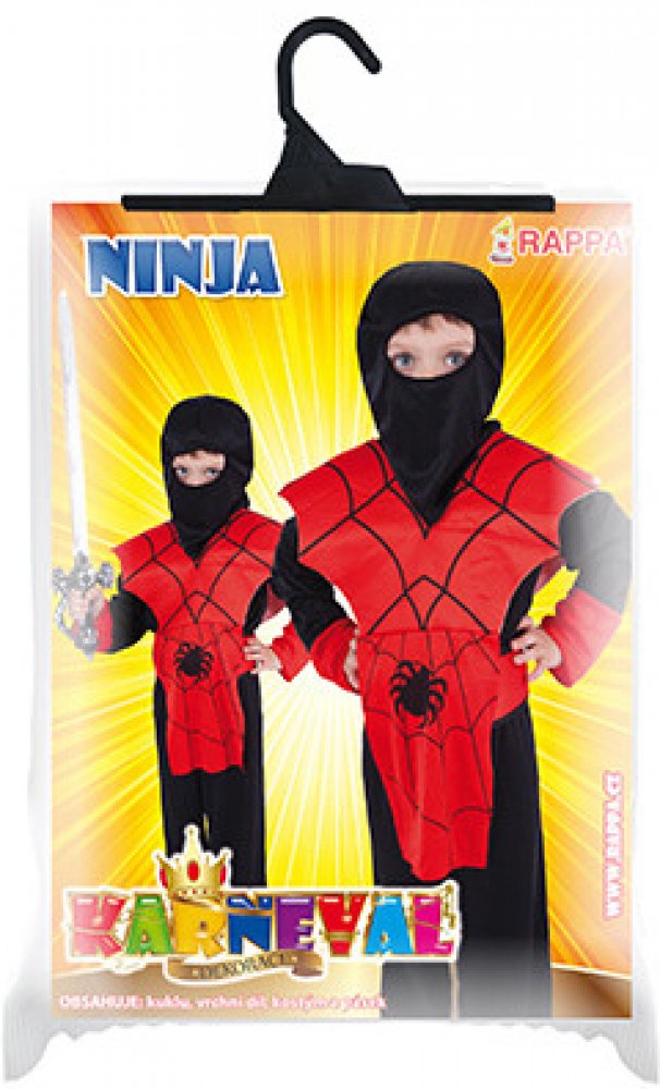 Karnevalový kostým Ninja ve velikosti S je určen pro chlapce ve věkovém rozmezí 4-6 let (110-116 cm). Balení obsahuje overal, vestu, kuklu, čelenku a opasek.