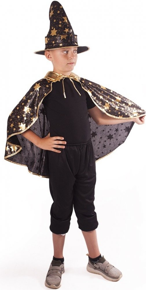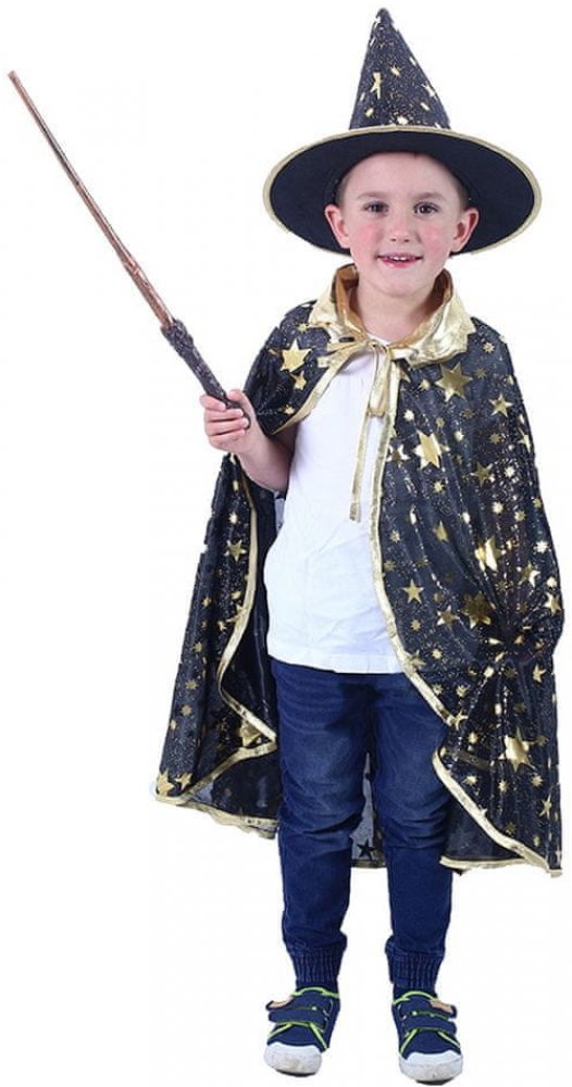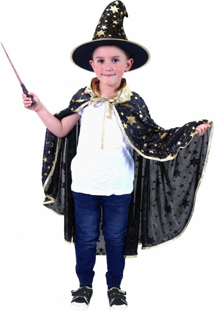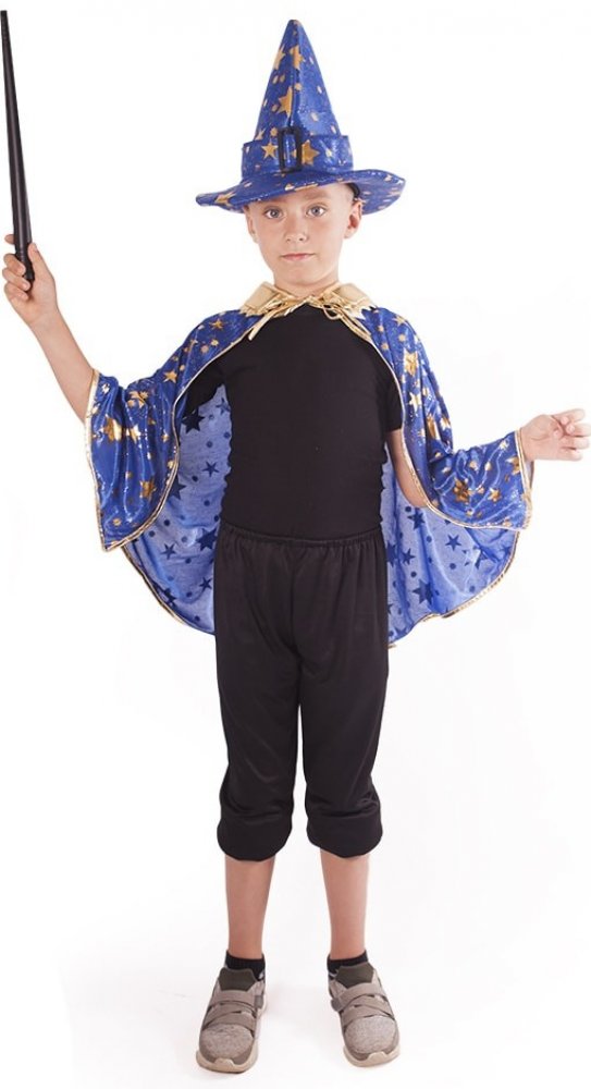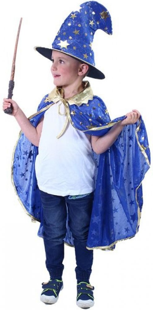 Perfektní souprava pro všechny čarodějnice nebo čaroděje na párty nebo karneval! Balení obsahuje čarodějnický plášť modré barvy se zlatým lemováním a hvězdami a perfektně sladěný klobouk. V těchto exkluzivních