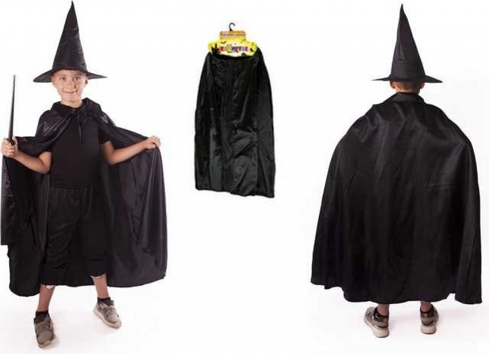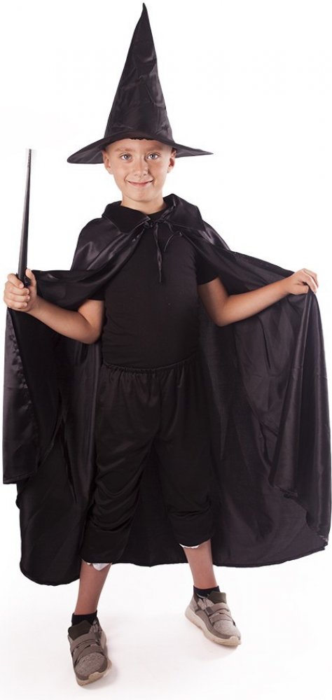 Rappa Dětský plášť černý s kloboukem čarodějnice
