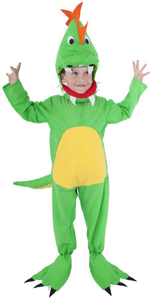 Kostým má dvě části - overal s ocasem a nasazovací hlavu s otevírací pusou.