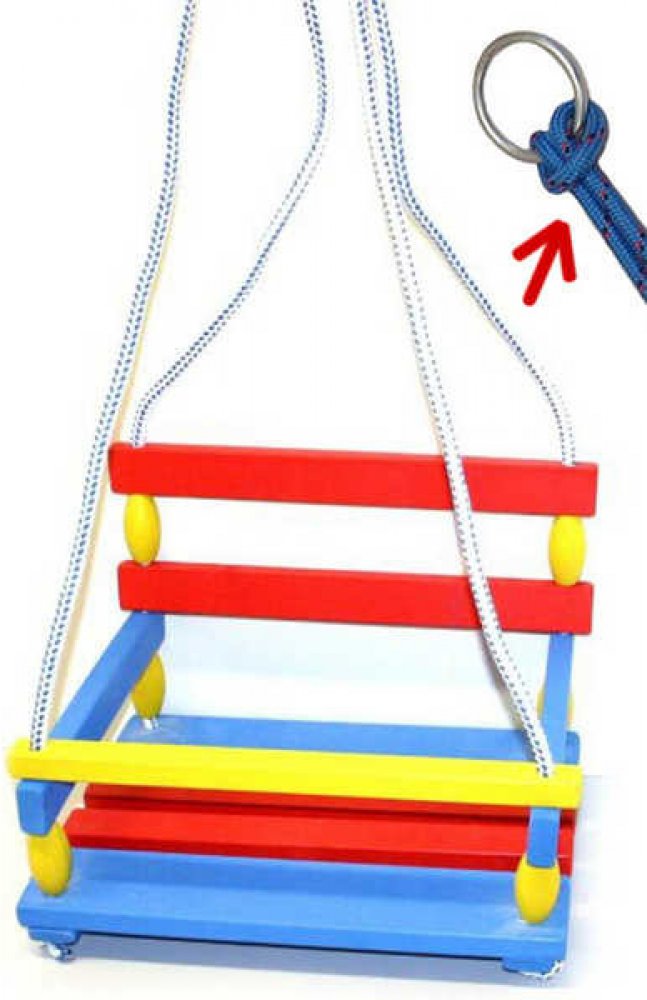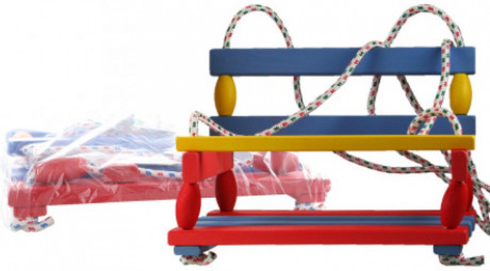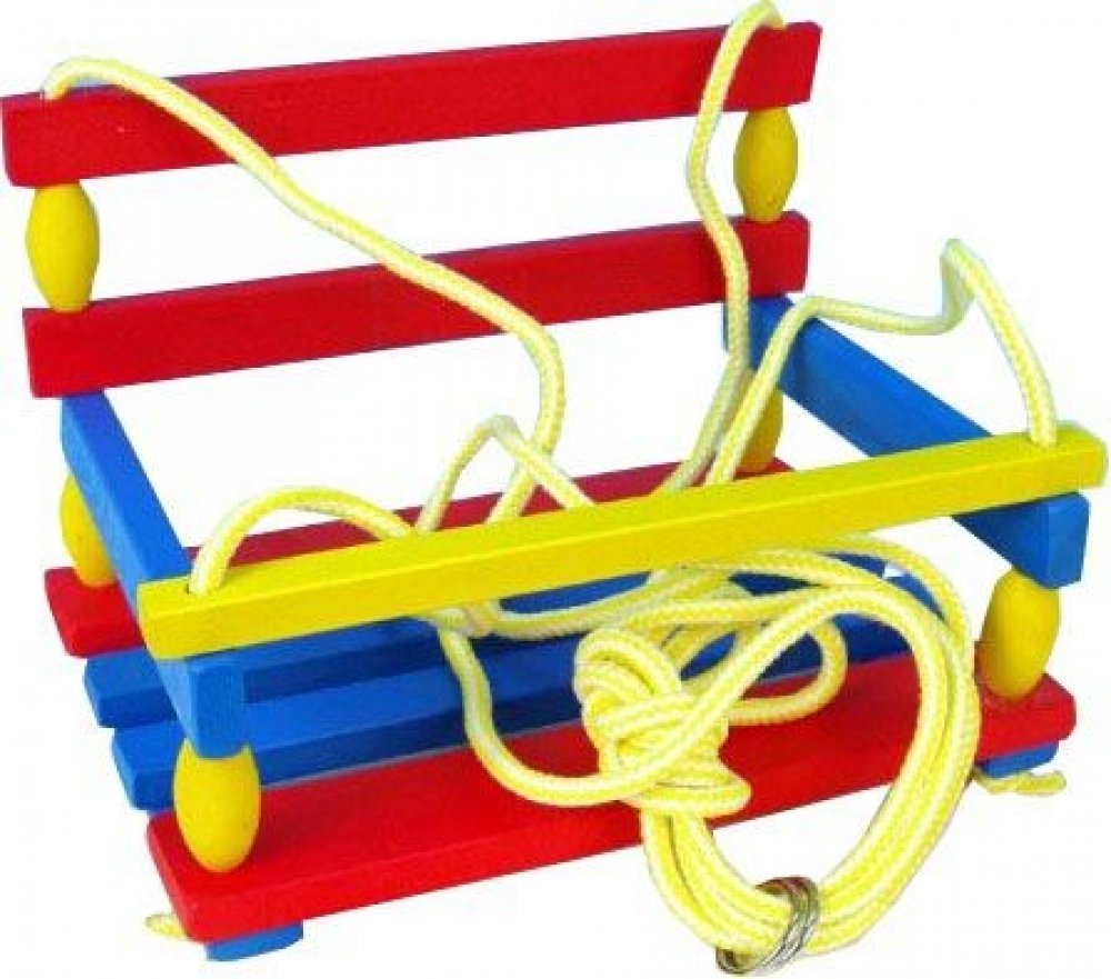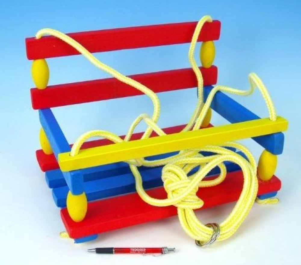 Krásná dřevěná barevná houpačka. Vhodná pro použití doma i na zahradě. Houpačka je bezpečná a stabilní.
