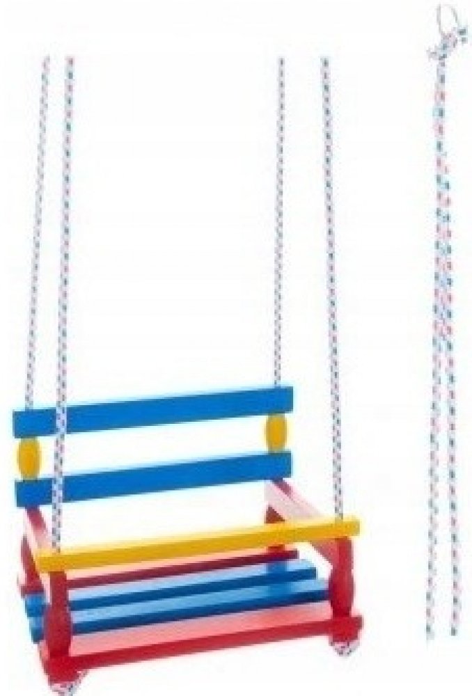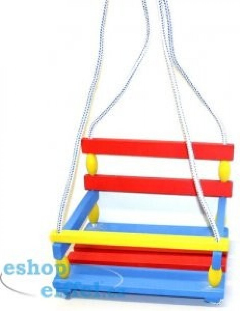 Krásná dřevěná barevná houpačka. Vhodná pro použití doma i na zahradě. Houpačka je bezpečná a stabilní. Rozměr sedáku 38x30cm. Nosnost houpačky 80kg. Vhodné pro děti od 3 let.